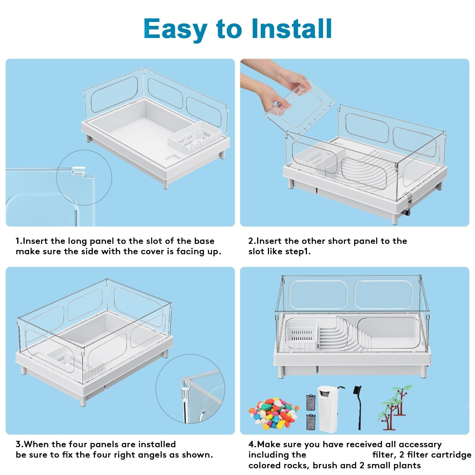 Turtle Tank Kit - Starter Aquarium with Filter, Brush, Easy to Install Clea...