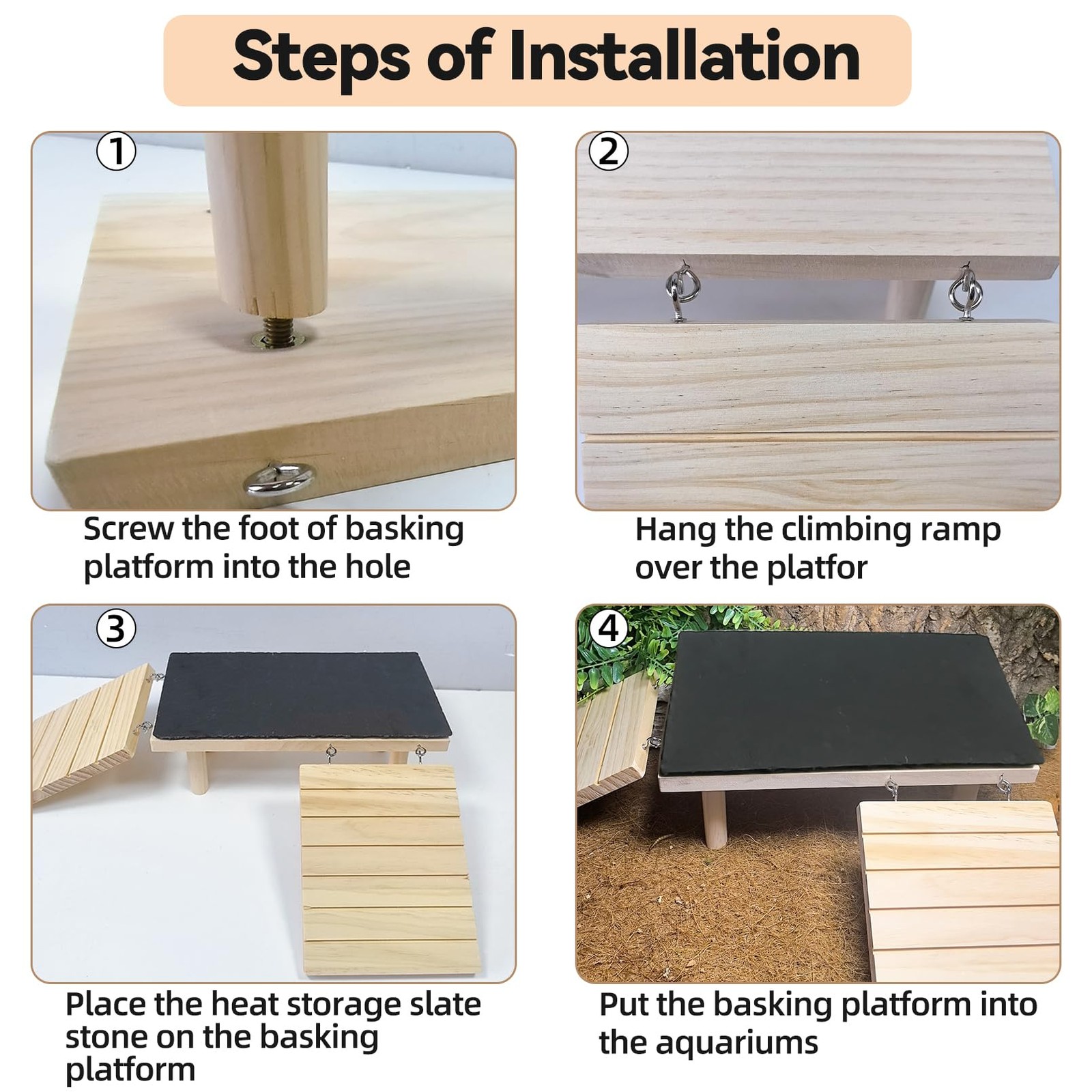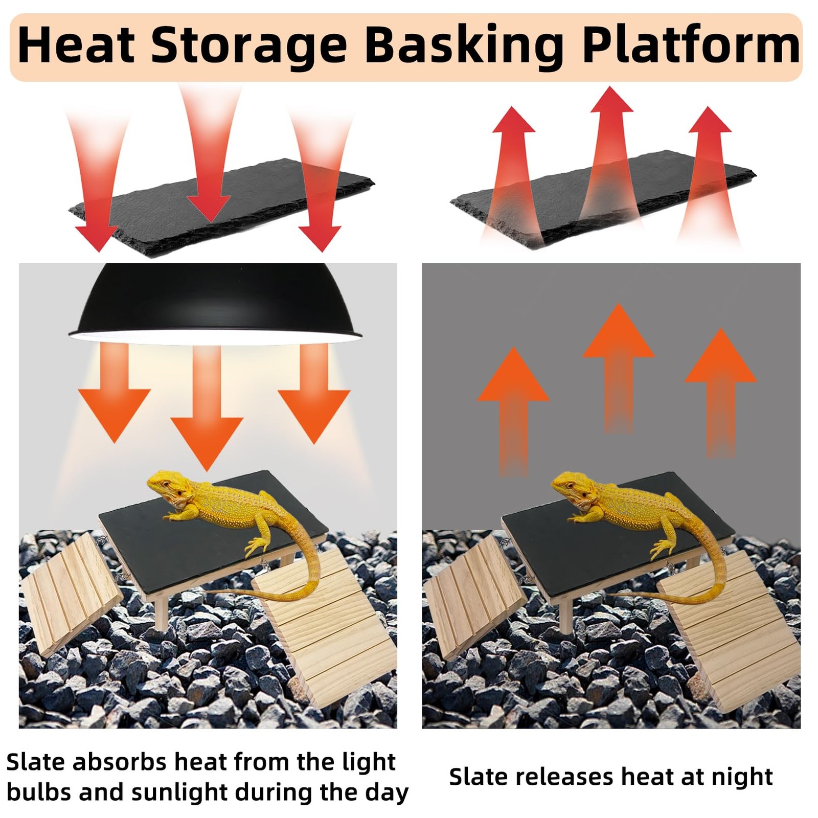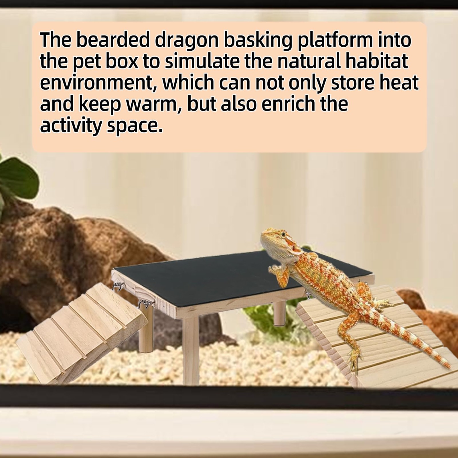 Bearded Dragon Basking Platform,Wooden Reptile Cave Hideout with Heat Storage...