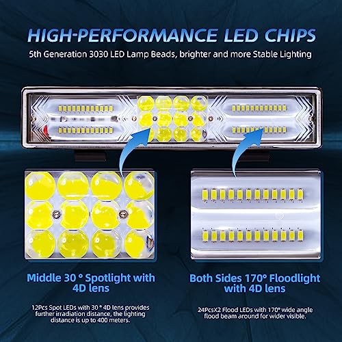 2Pcs x 12 Inch Led Bar Pod Light with 4D Lens, Spot Flood Combo Beam, 180W
