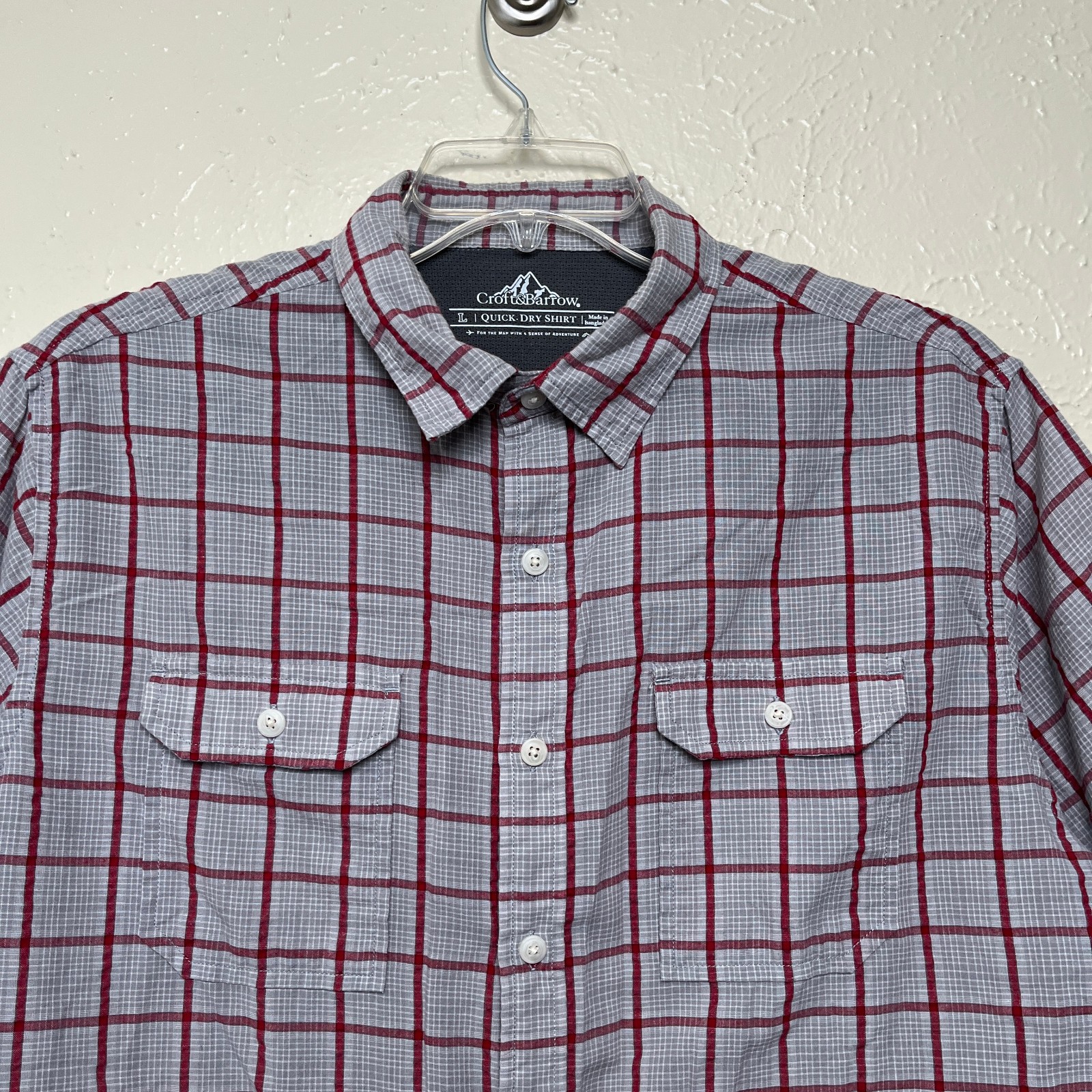 Croft Barrow Shirt Mens L Gray Quick Dry Vented Short Sleeve