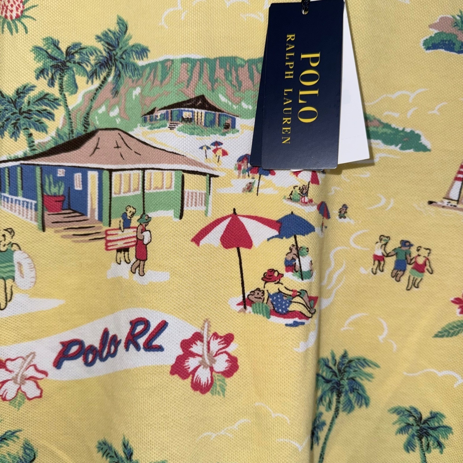 как выглядит Polo Ralph Lauren Mens LT Polo Bear Yellow Mesh Short Sleeve Polo Mesh Shirt NWT фото