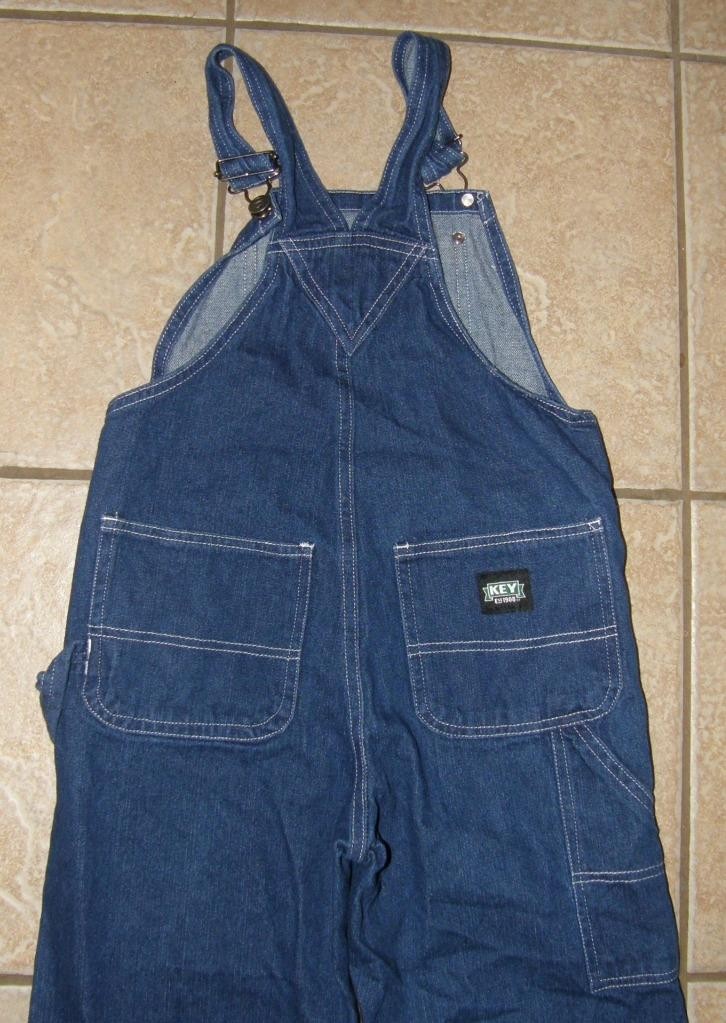 KEY Boys Sz 8 Blue Denim Cotton Carpenter Style Adjustable Straps Jean Overalls
