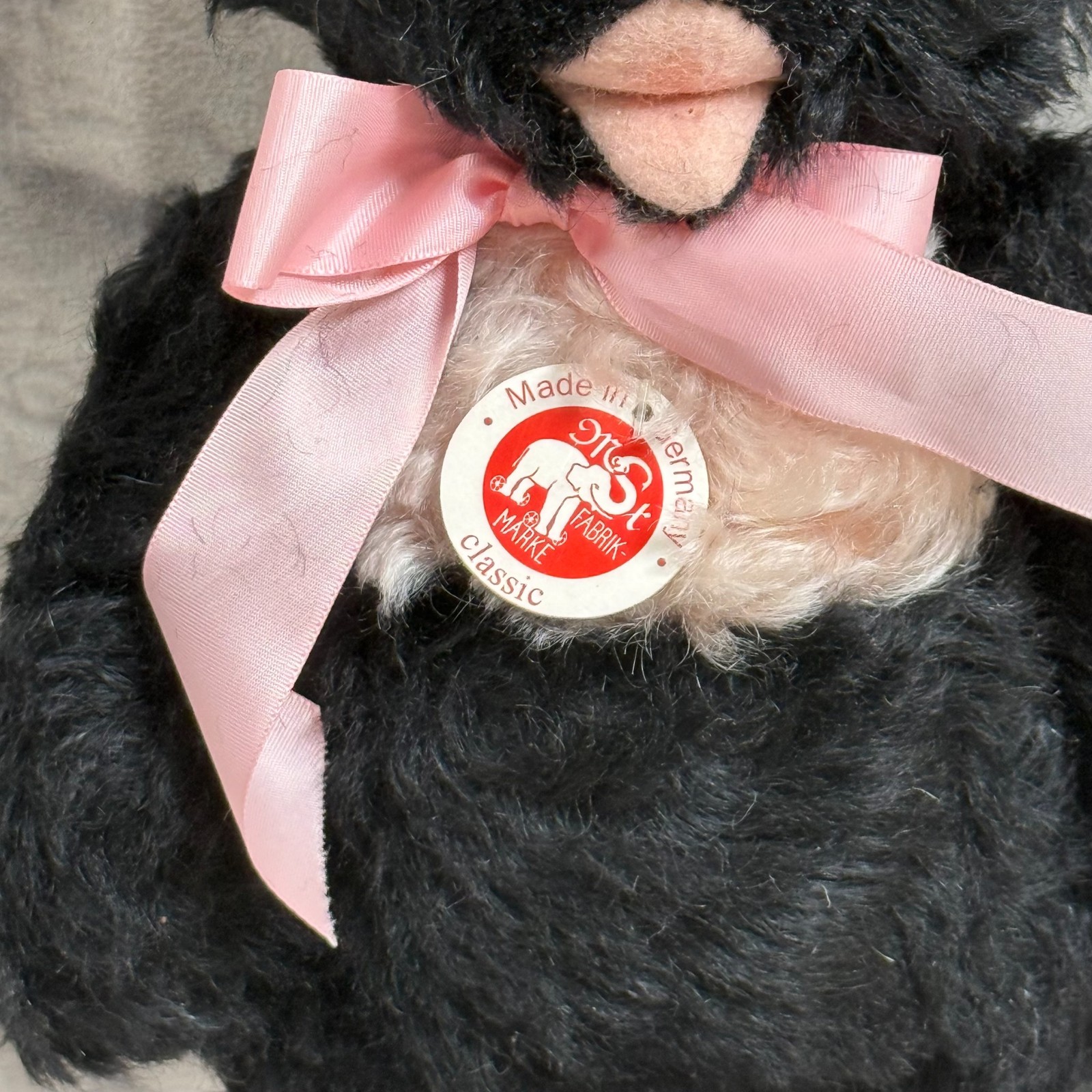 как выглядит 2005 Steiff Teddy Bear Zotty Black Pink 10" Jointed Mohair COA Tags Limited Ed фото