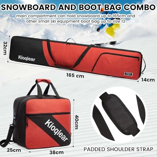 Padded Snowboard and Boot Bag Combo,Perfect for Snowboard Up to 165 cm and RED