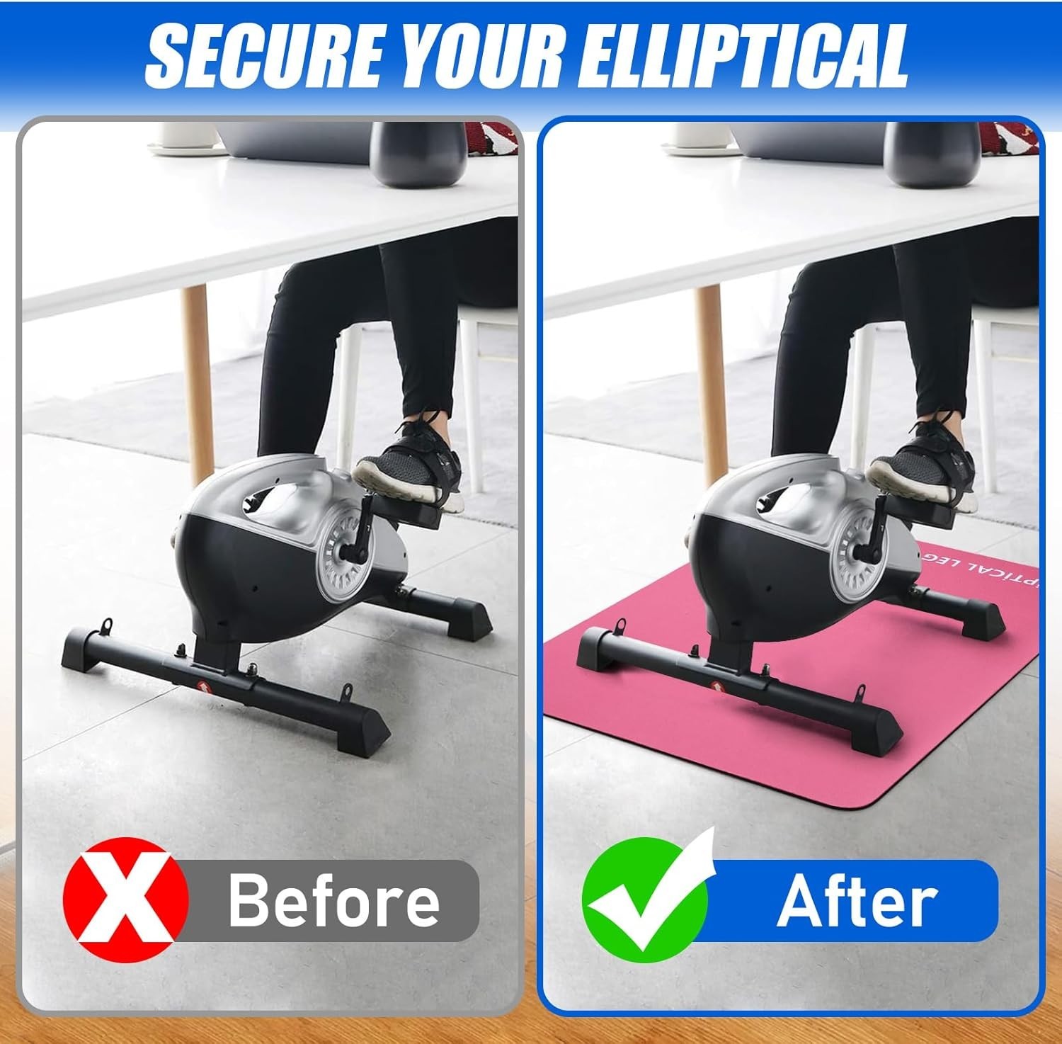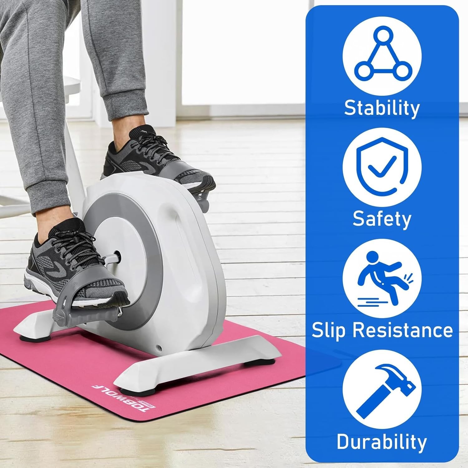 Easy-Clean Non-Slip Exercise Mat - Stability for Elliptical Workouts 23.6x23.6