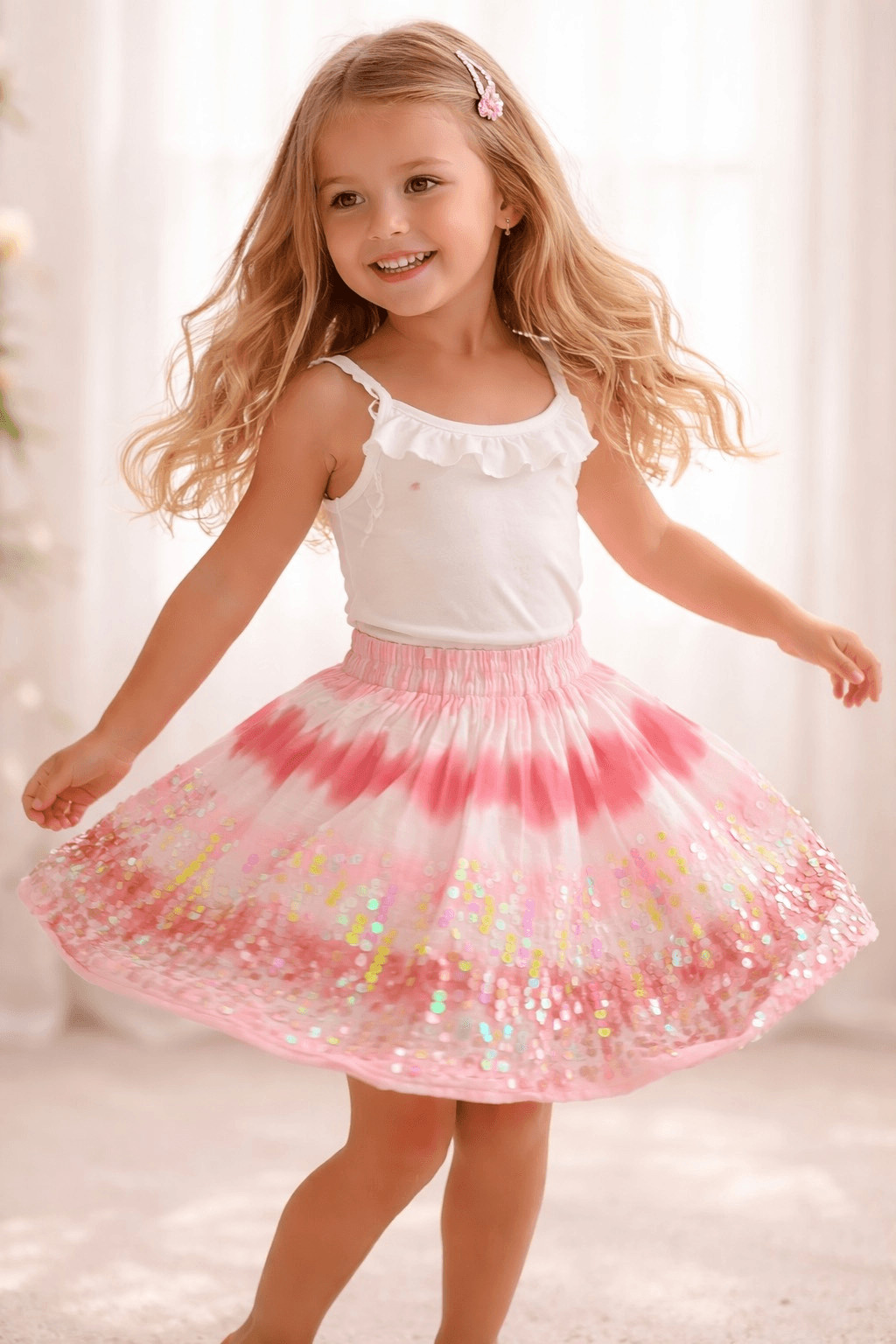 H M Girls Pink Tie Dye Sequin Skirt 4-5Y 100 Cotton Party Twirl