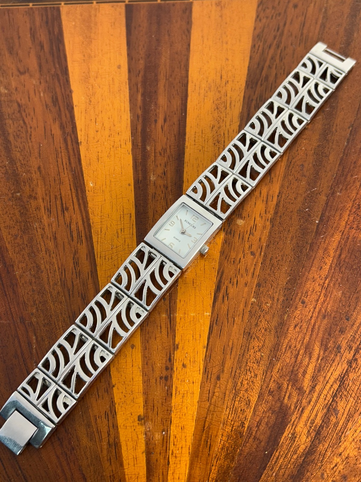 Rumours Watch Women Silver Tone Silver Dial Tank Style Quartz 19mm New Battery