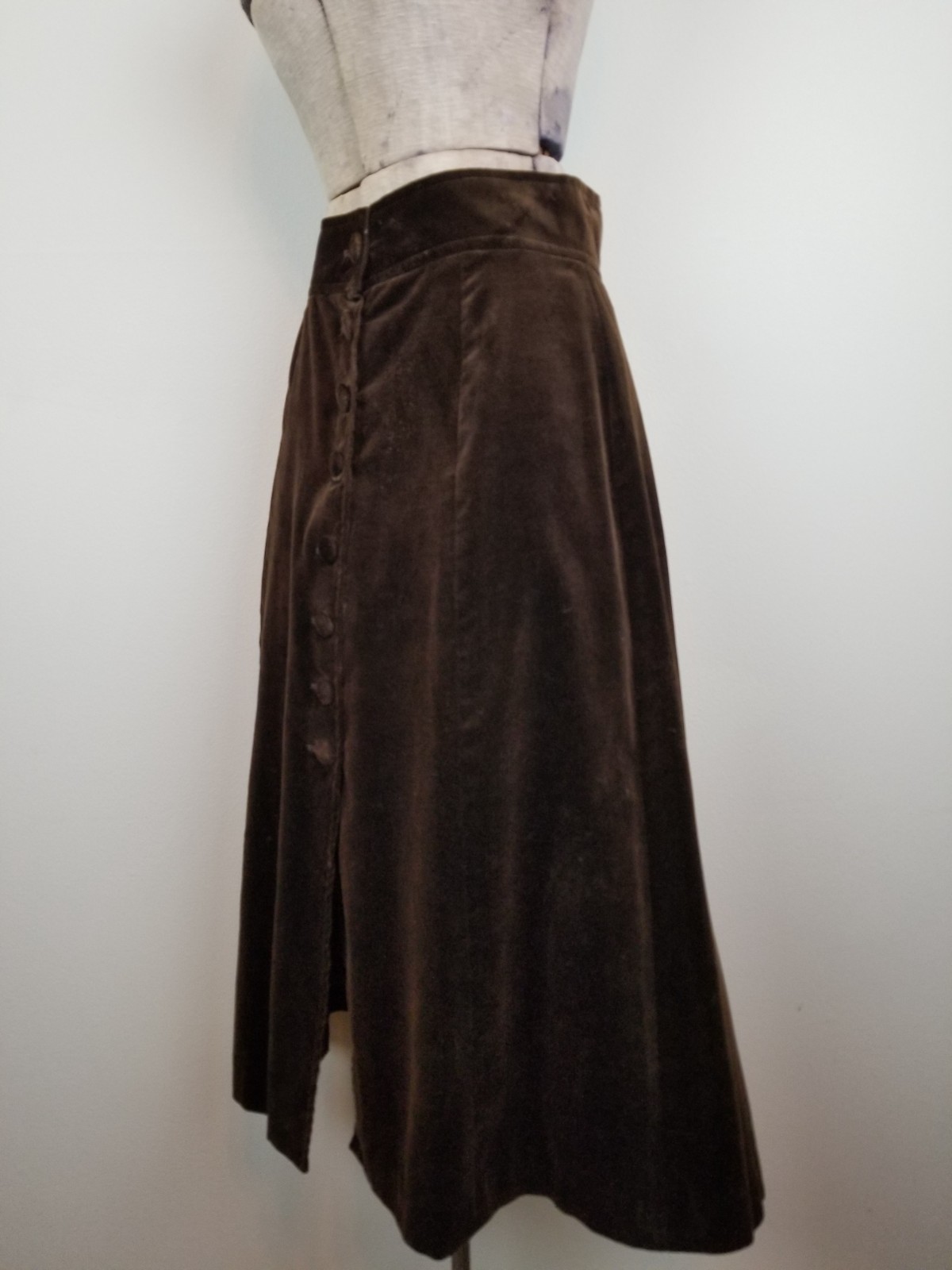 Vintage 1950's Girls Brown Velvet Covered Button Front Midi Skirt Junior Mates