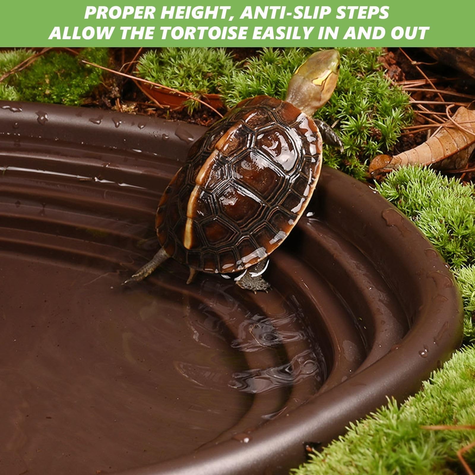 3PCS Tortoise Water Bowl with Ramp Leaf Tortoise Water Food Dish Turtle Pool ...