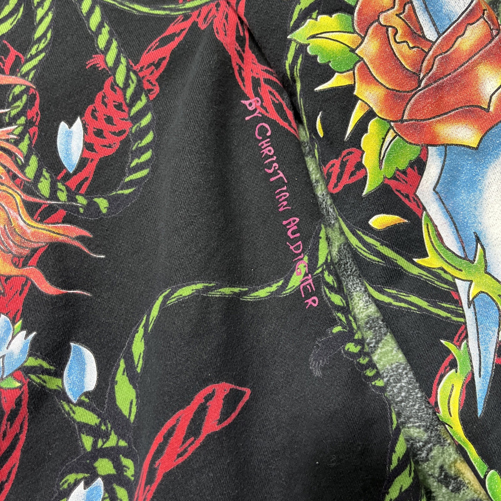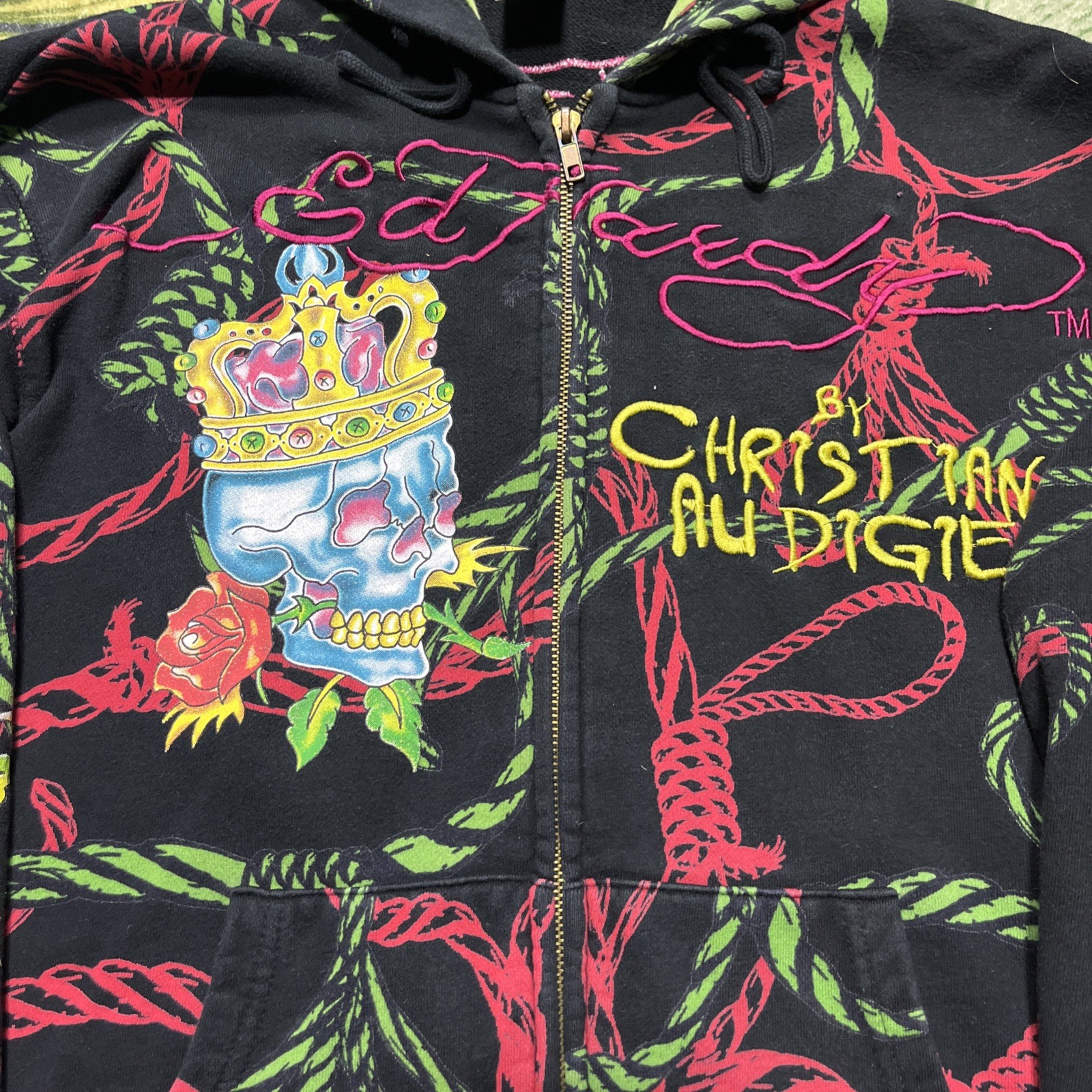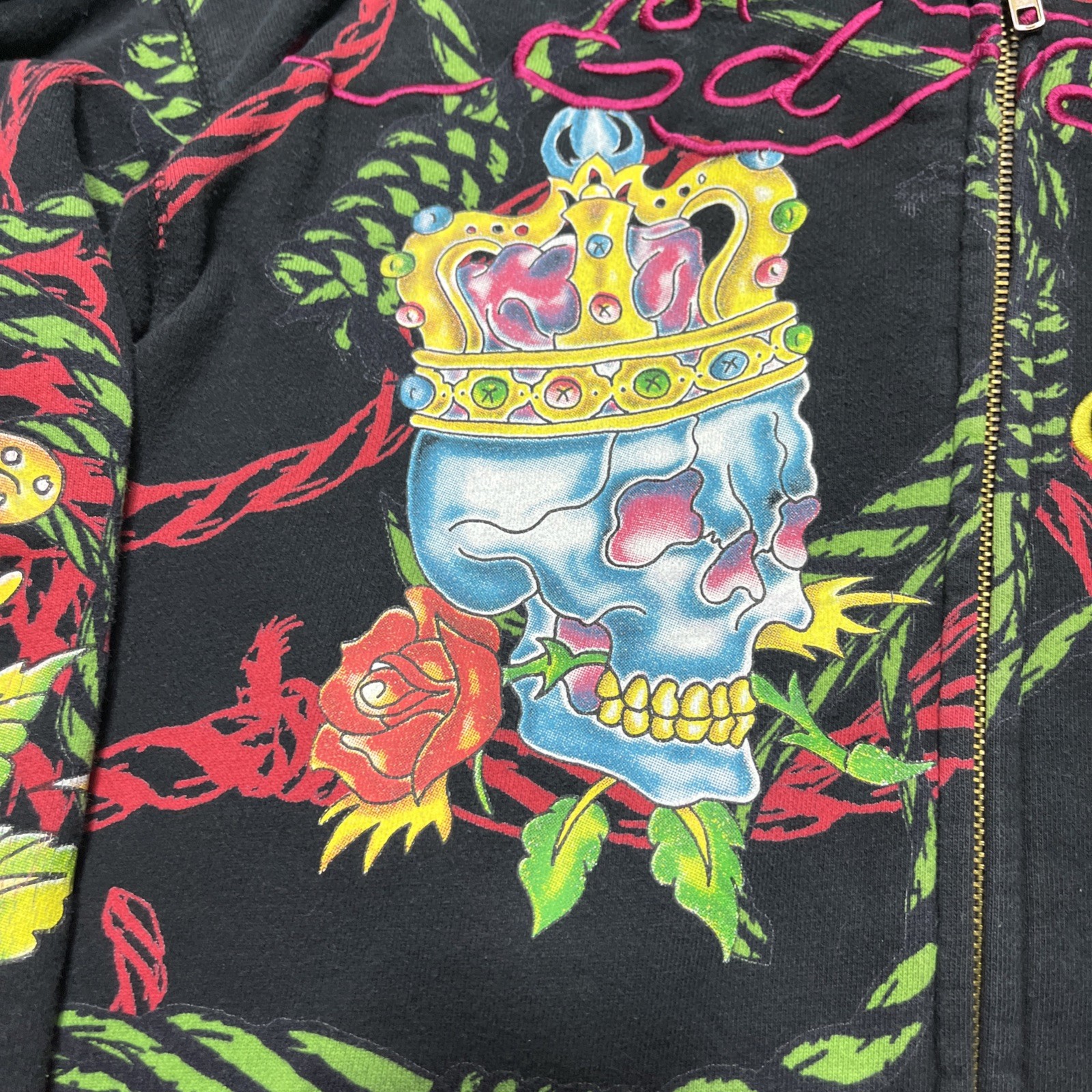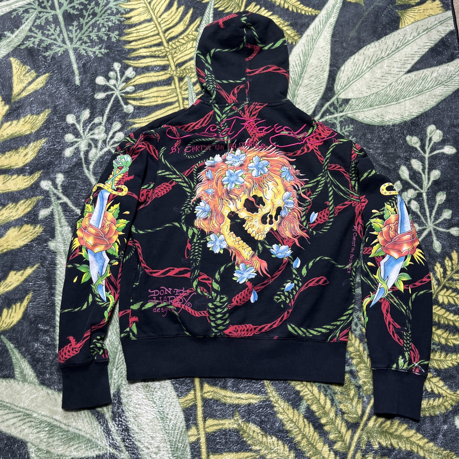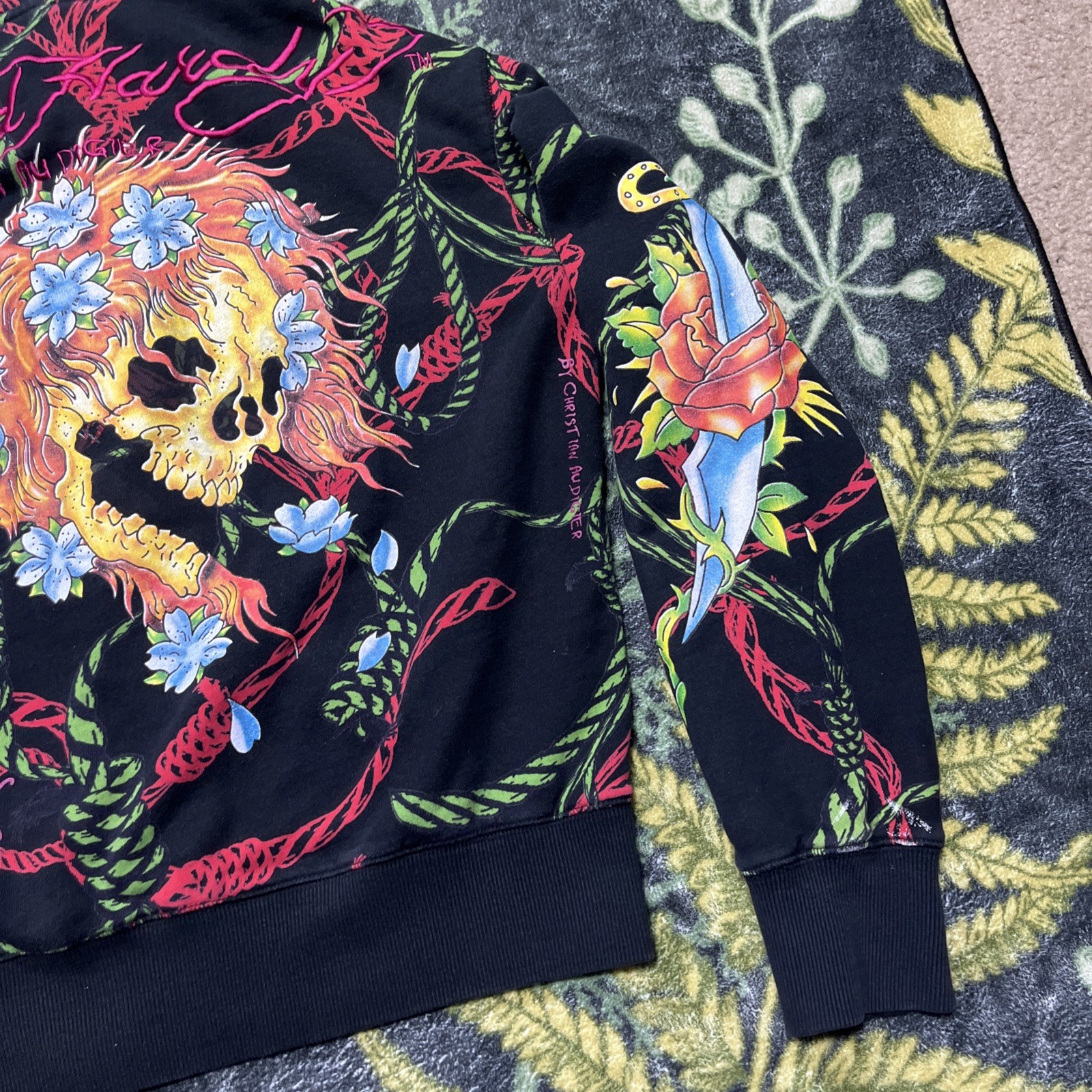 Vintage Mens Medium Ed Hardy by Christian Audigier AOP Y2K Style Hoodie Skull