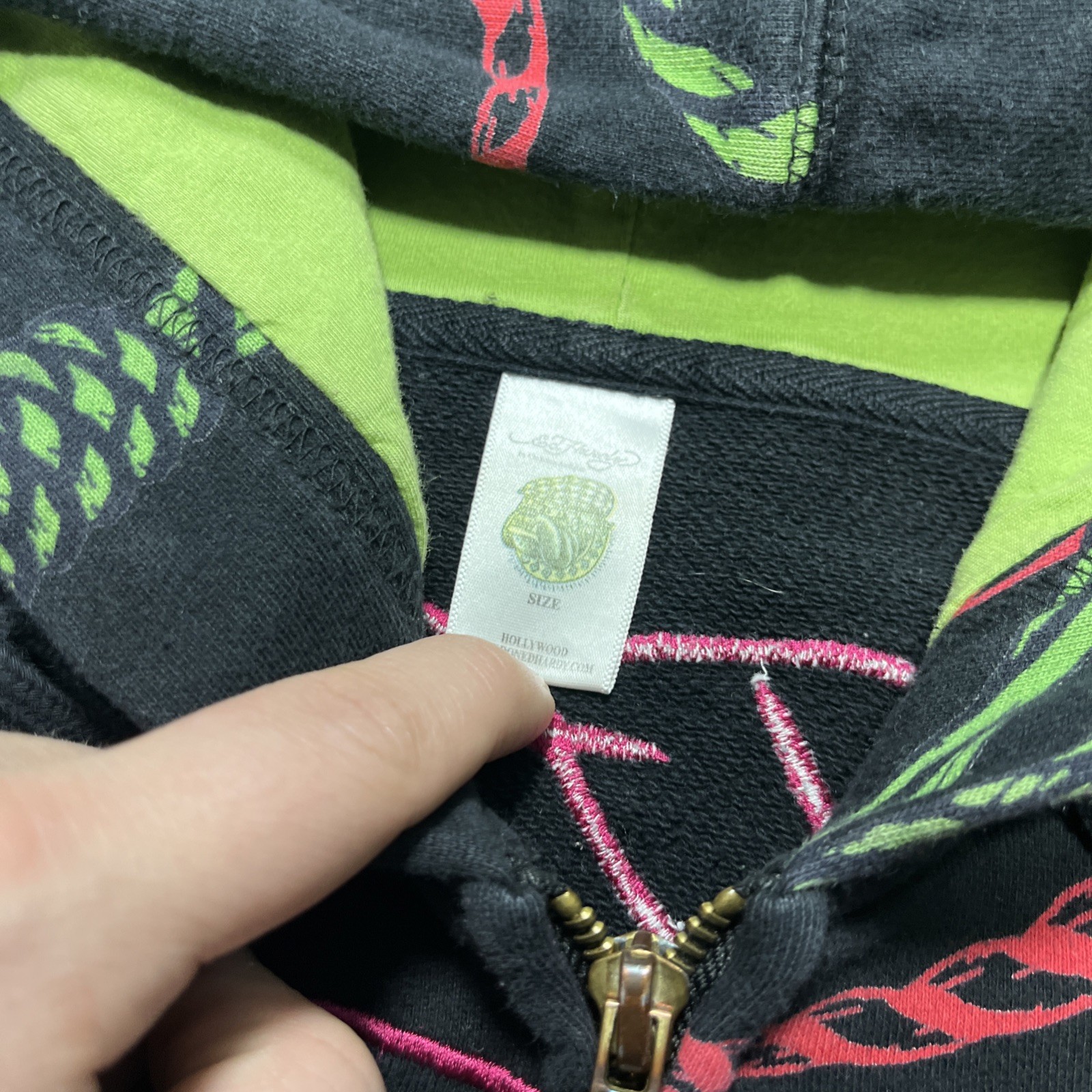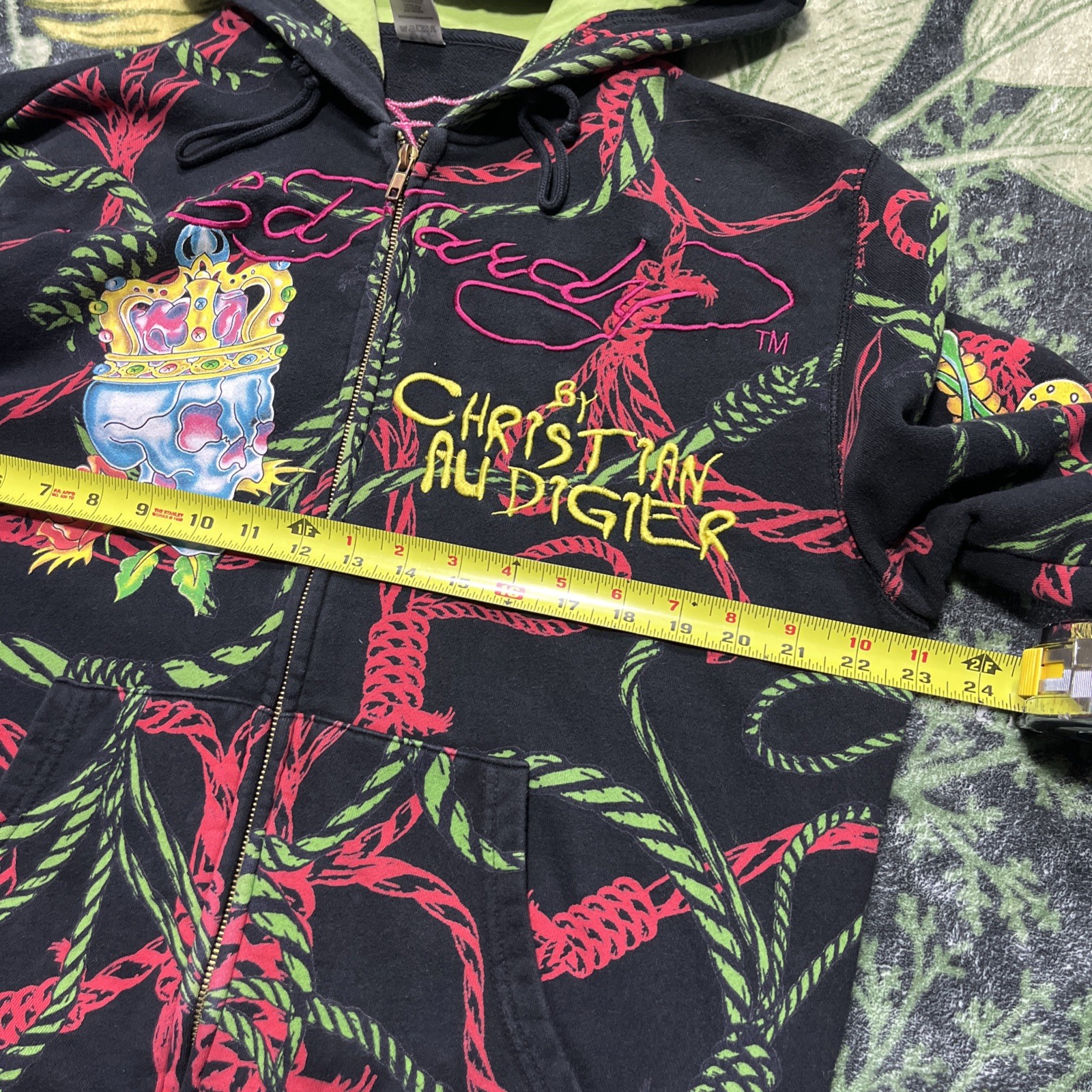 как выглядит Vintage Mens Medium Ed Hardy by Christian Audigier AOP Y2K Style Hoodie Skull фото