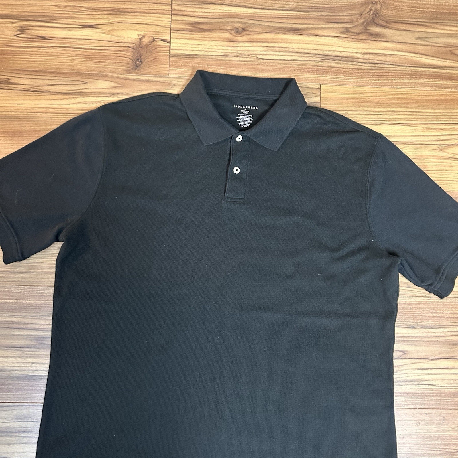 как выглядит Saddlebred Black Polo Shirt Mens Large Easy Care Cotton Blend Short Sleeve фото