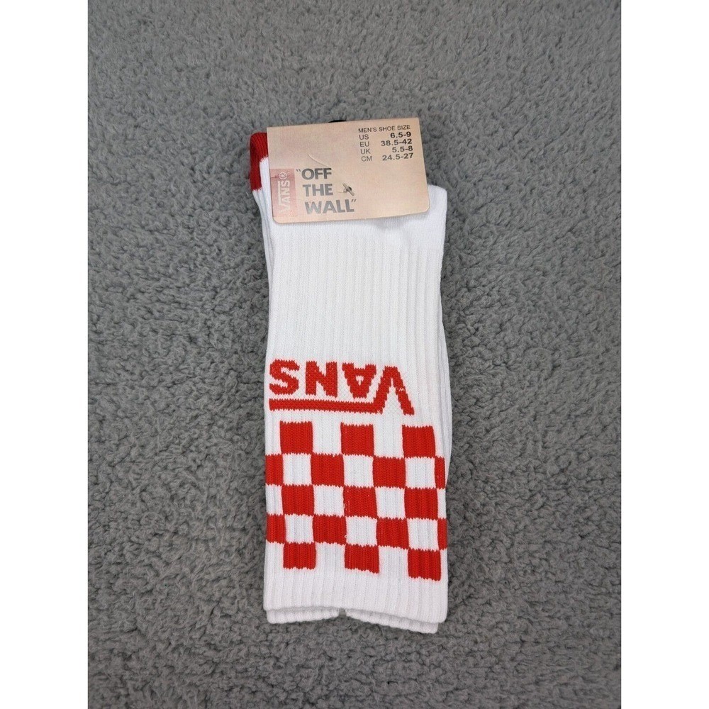 Vans Drop V Crew Socks Mens Womens 6.5-9 White Red Checkerboard Classic Athletic