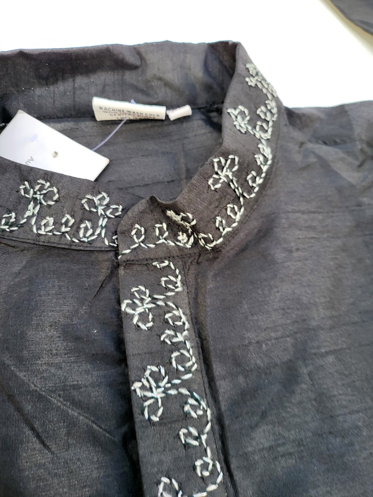 Mens AuthenticTraditional Black Silk Kurta New With Tags Size XL