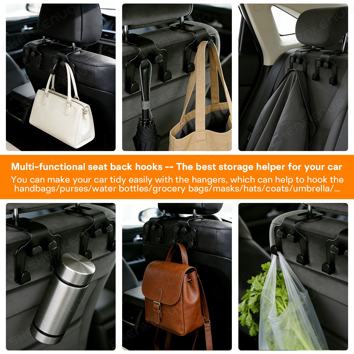 2 Pcs Car Seat Back Double Hooks Headrest Hangers Purse Bags Holder Organizer