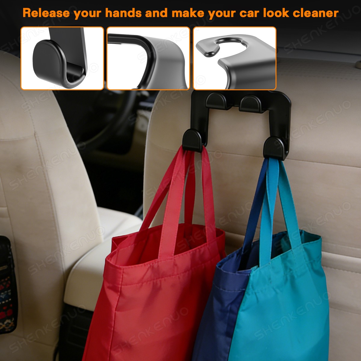как выглядит 2Pcs Black Car Headrest Hook Seat Back Hanger Bag Purse Cloth Holder фото