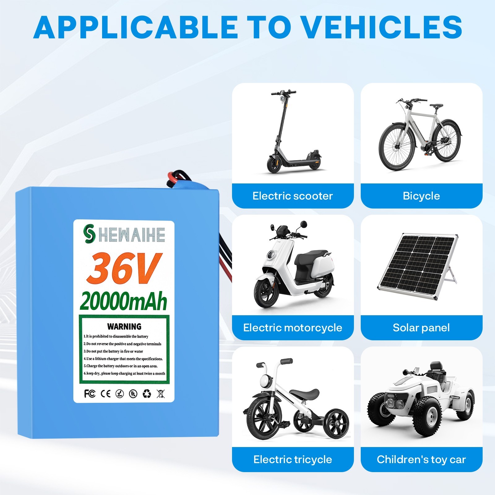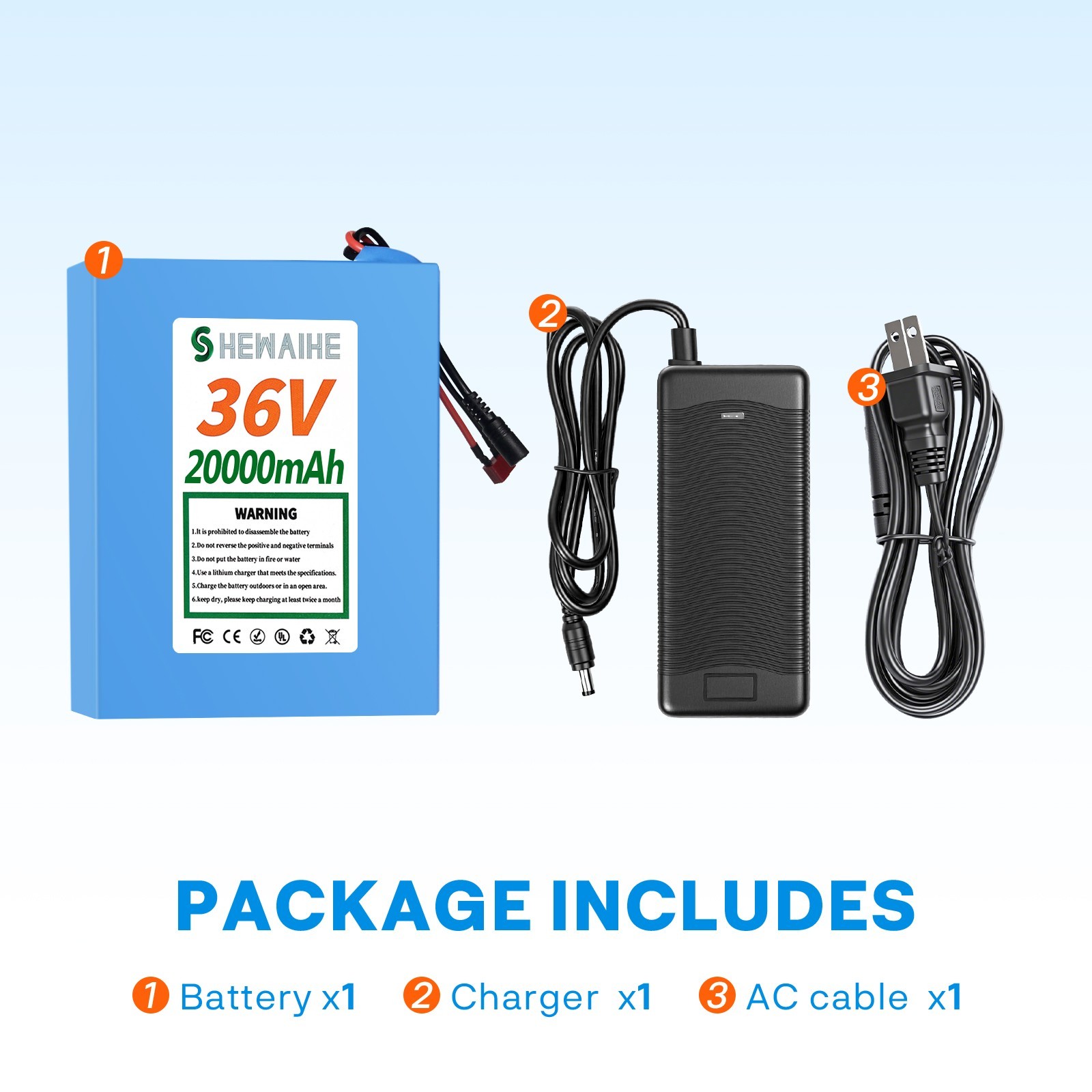 48V Battery 36 Volt 8Ah 15Ah 20Ah Electric Lithium Battery for 0-1000W Motor