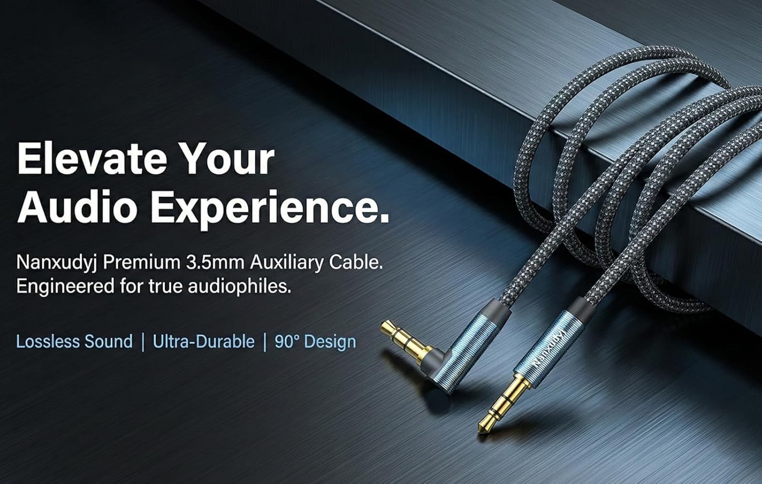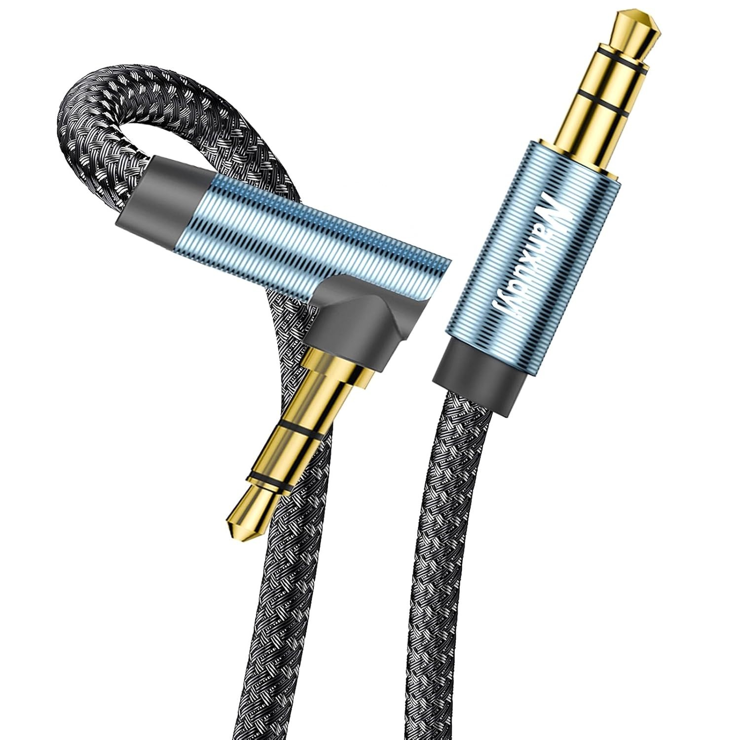 High-Fidelity 3.5mm Stereo Aux Cable Braided Cotton Gold-Plated Connectors