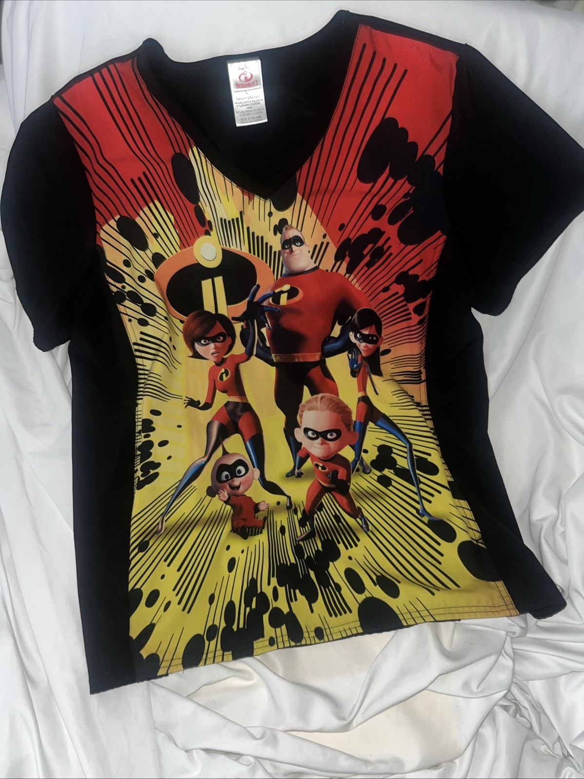 Disney Pixar Incredibles 2 All Over Print Scrub Top Women's Size Large L C65