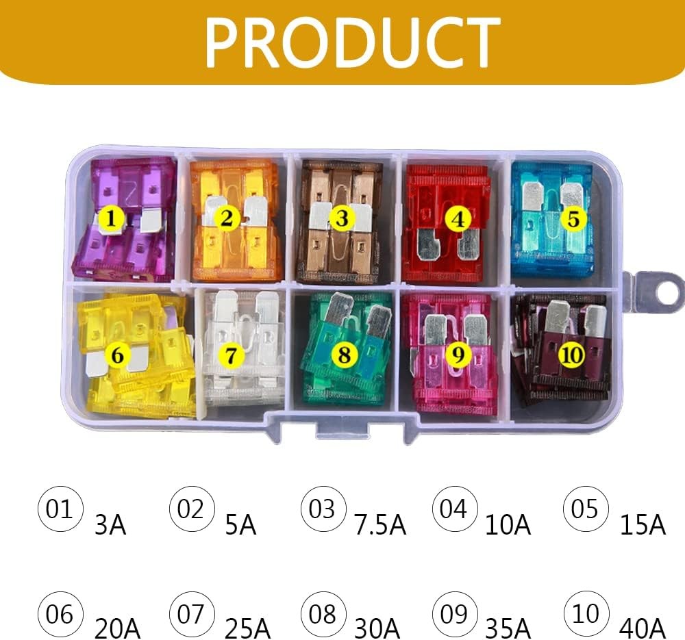 50Pcs Standard Fuse Assortment Kit 3A 5A 7.5A 10A 15A 20A 25A 50Pcs-MEDIUM