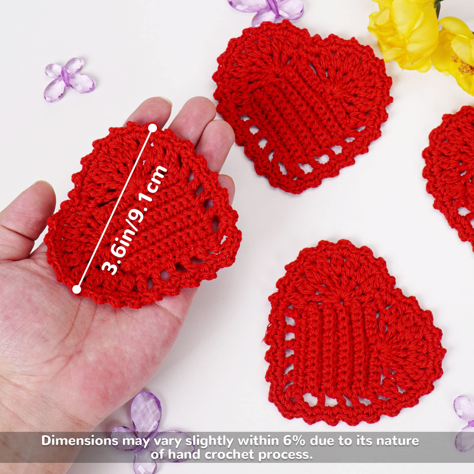 • 4 Pieces 3.6 Inch Valentine's Day Textile Coasters Crochet for Crafts, Pure C...
