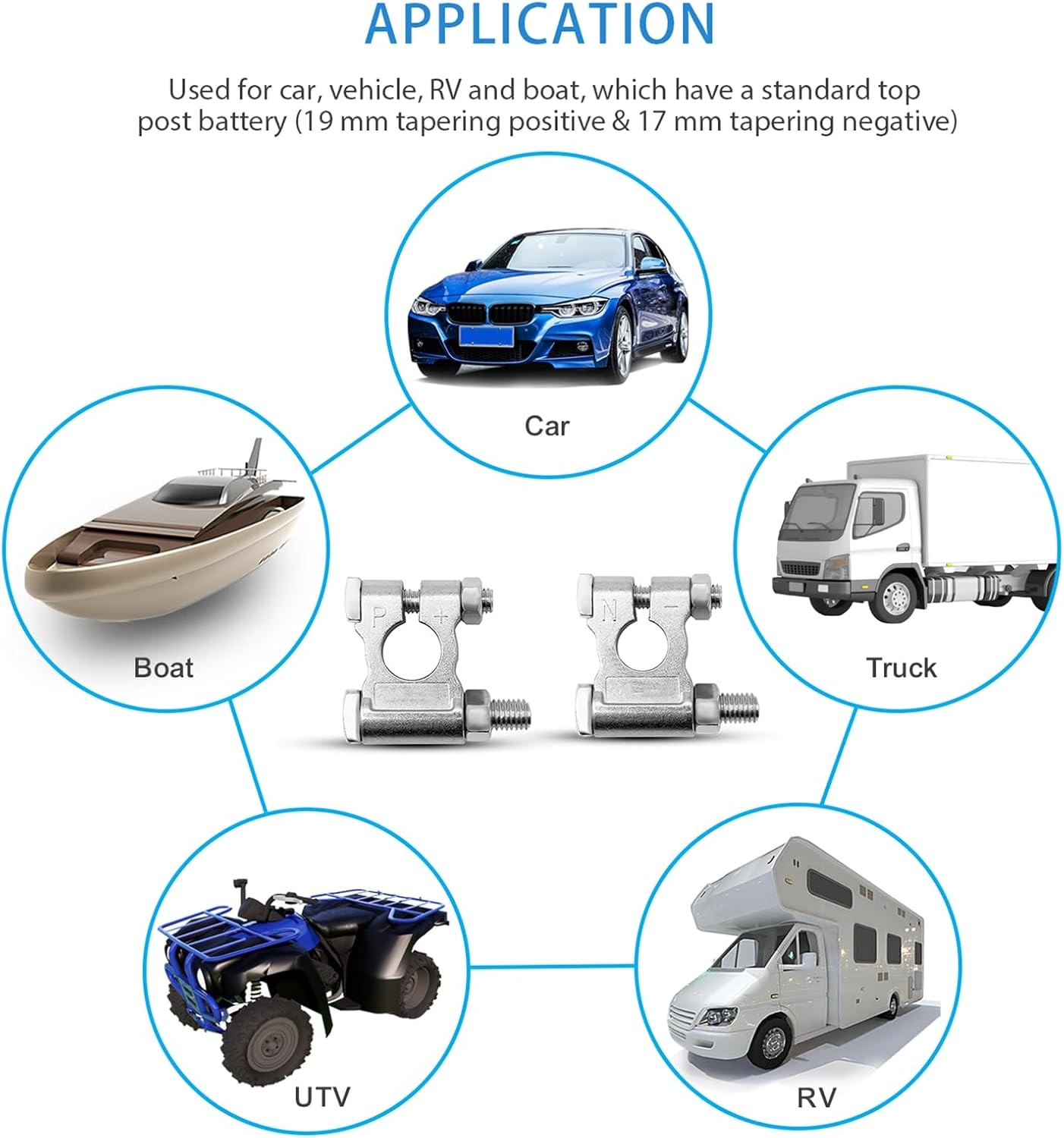 Military Spec Battery Terminal Top Post Set, for Car, Truck, Boats, RV, Vessels,