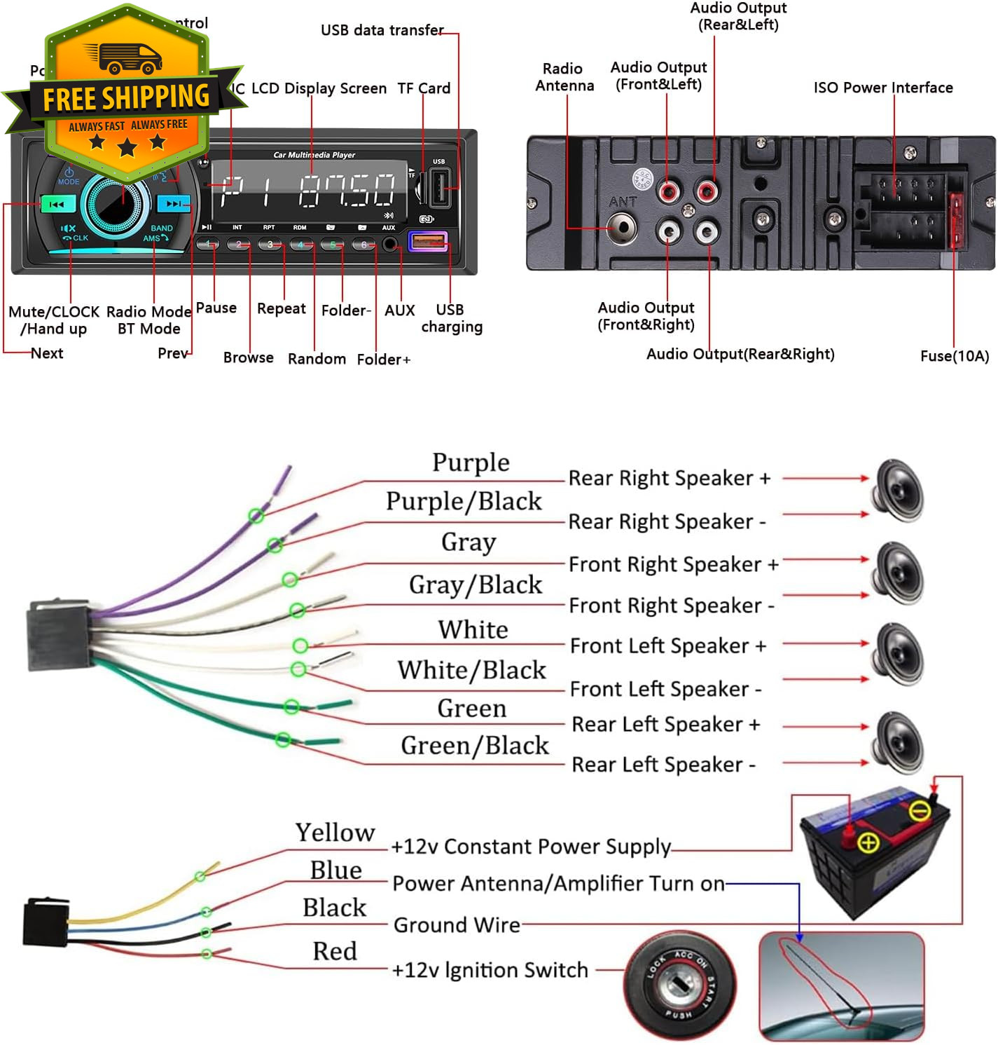 Marine Bluetooth Stereo Single DIN Boat Radio USB AUX FM MP3 w/Mic Remote