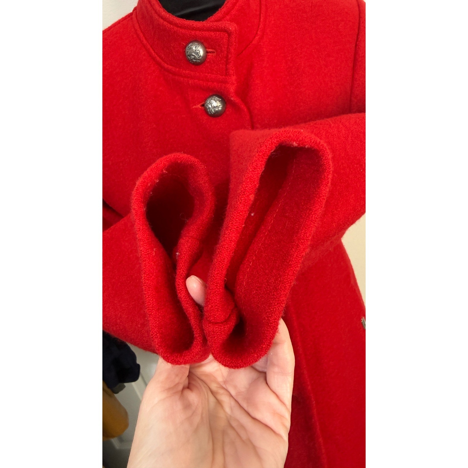 как выглядит Geiger Austria Red Boiled Wool Coat Tyrolean Jacket Silver Metal Buttons Sz 34 фото