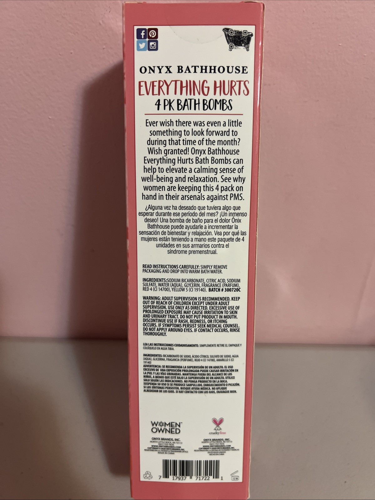 Onyx Bathhouse PMS Infused Eucalyptus 4 Piece Pink Bath Bombs Set New