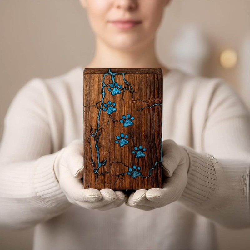 • Classic Handcrafted Wooden Cremation Urn Pet Ashes Memorial Keepsake Box New