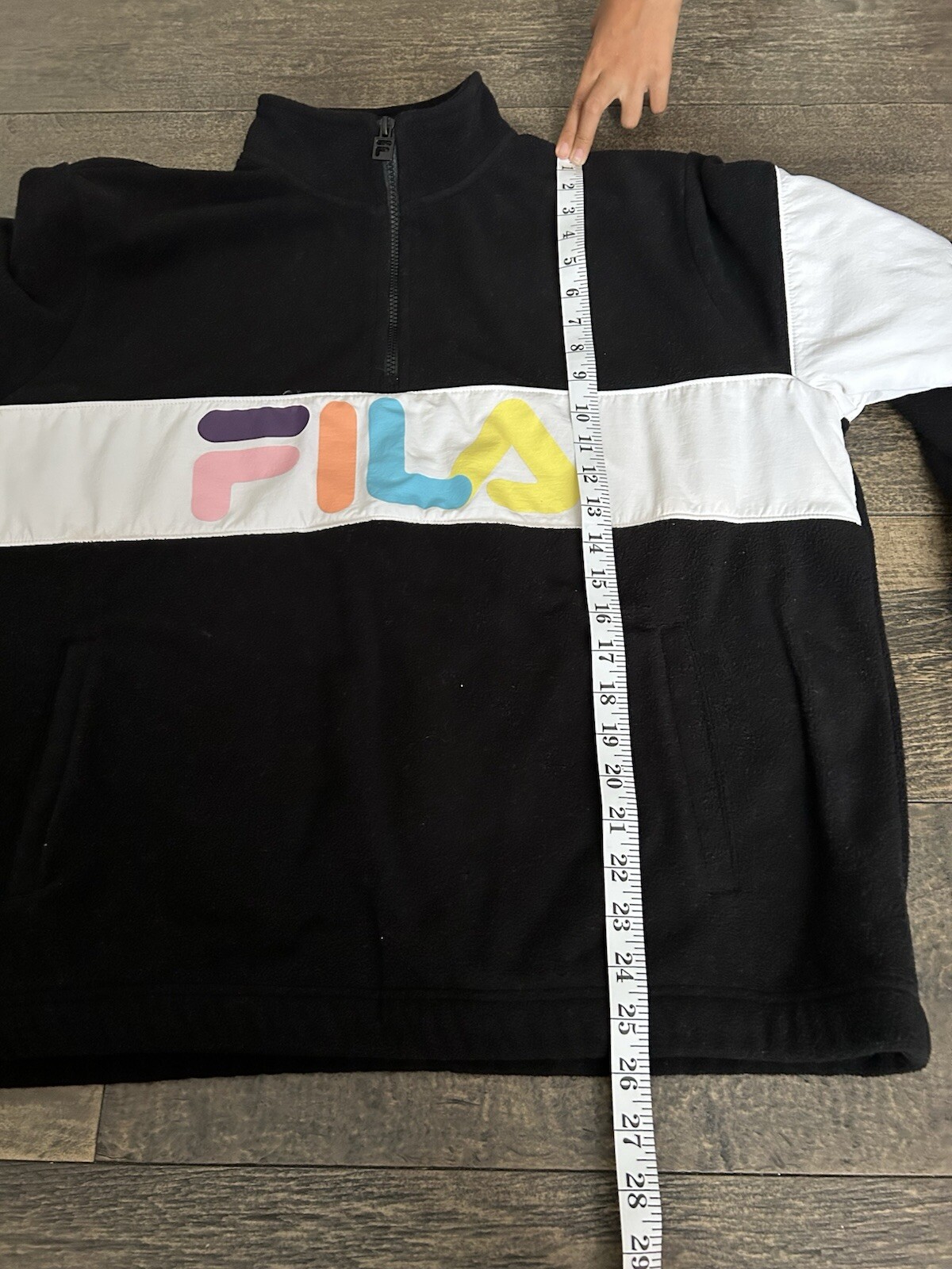 как выглядит FILA Womens Large Black Logo Spell Out Polyester Fleece 1/3 Zip Retro Jacket XL фото