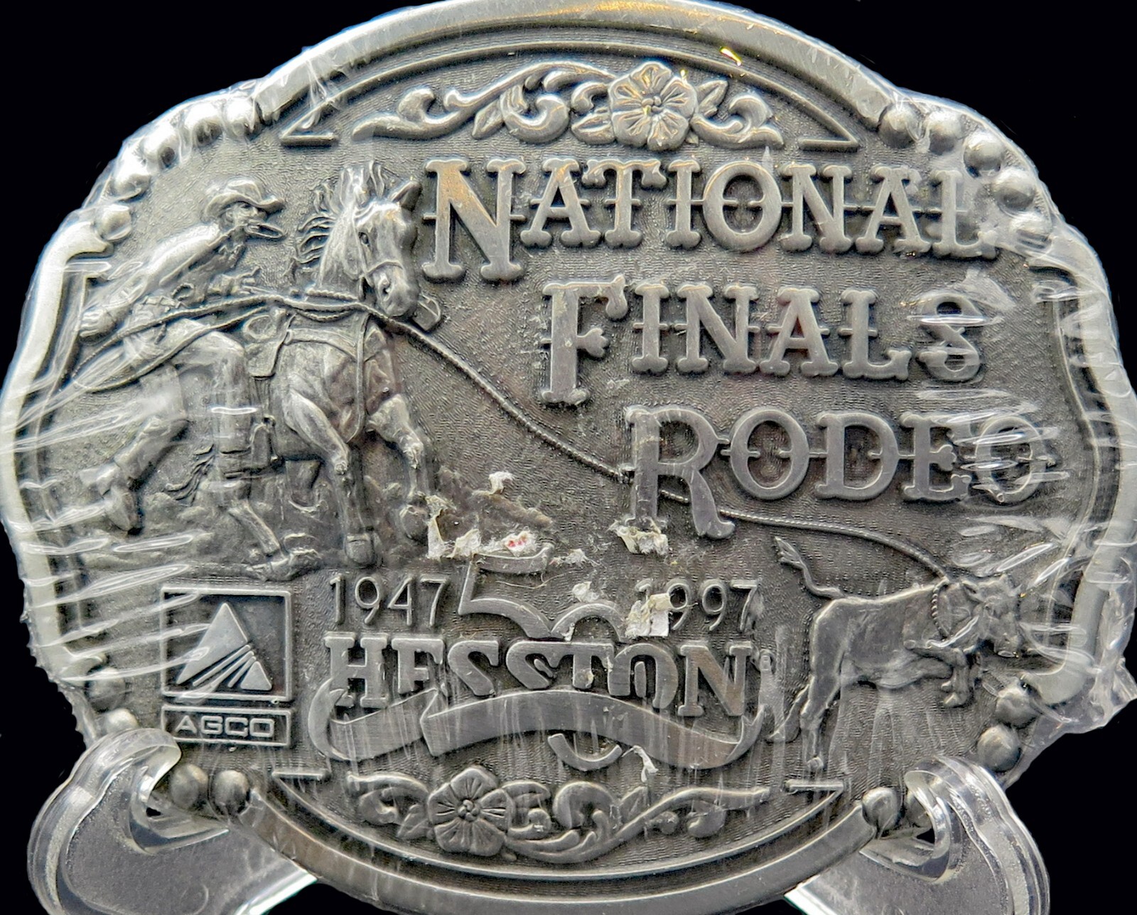 1997 Hesston Rodeo NFR Western Cowboy Calf Roping Vintage Belt Buckle