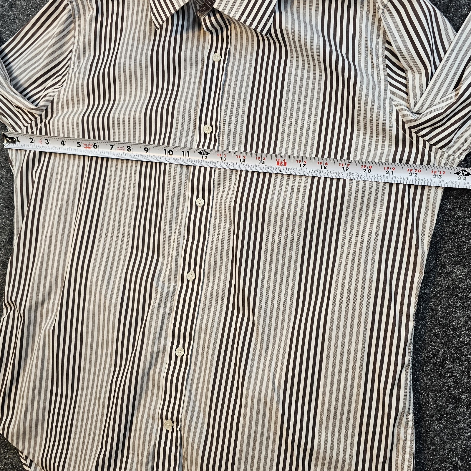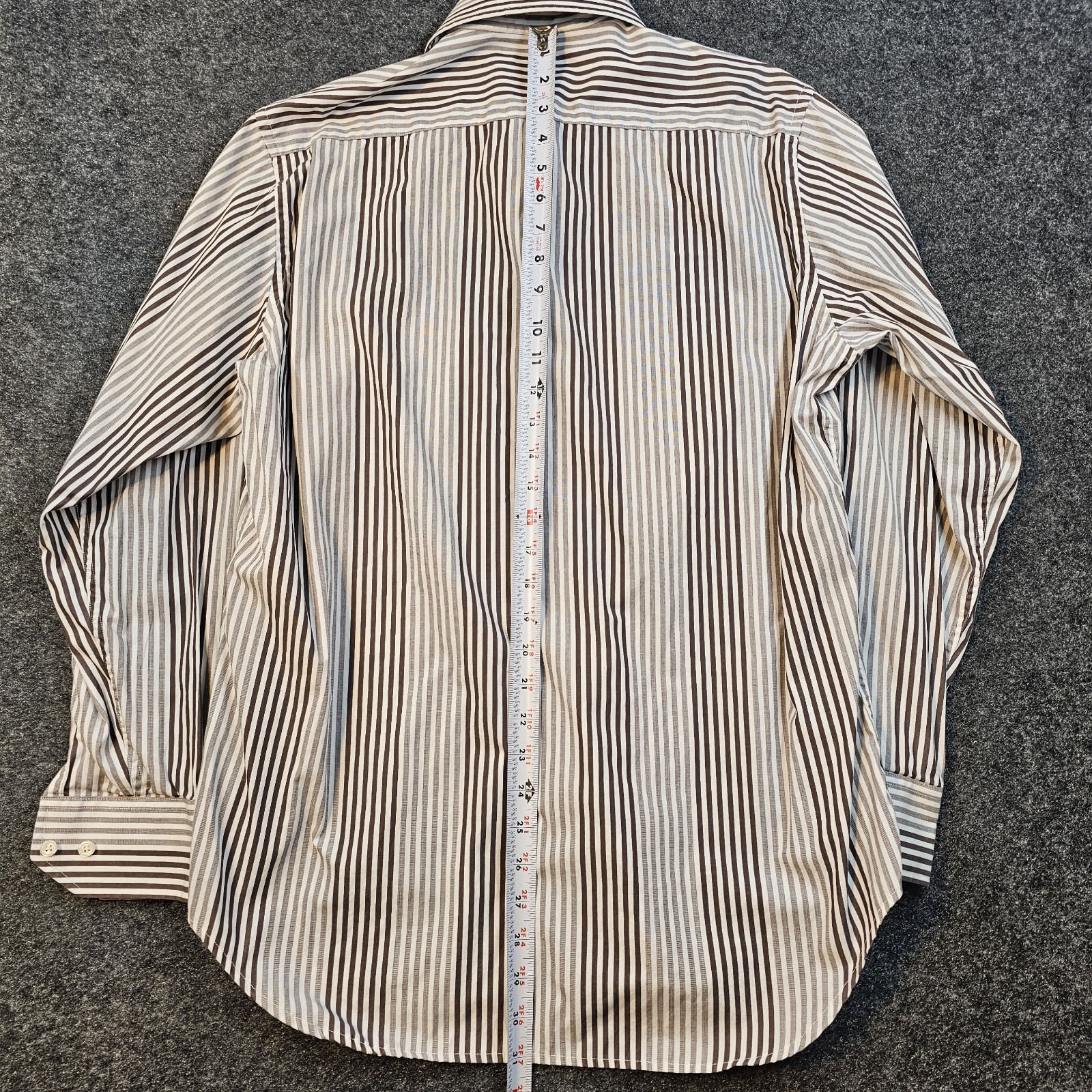 как выглядит TailorByrd Collection Mens L Brown Cream Stripe Dress Shirt Long Sleeve Cotton фото