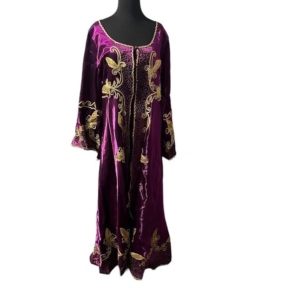 Kaftan Purple Embroidered Maxi Dress, Size M/L