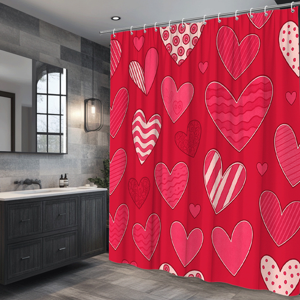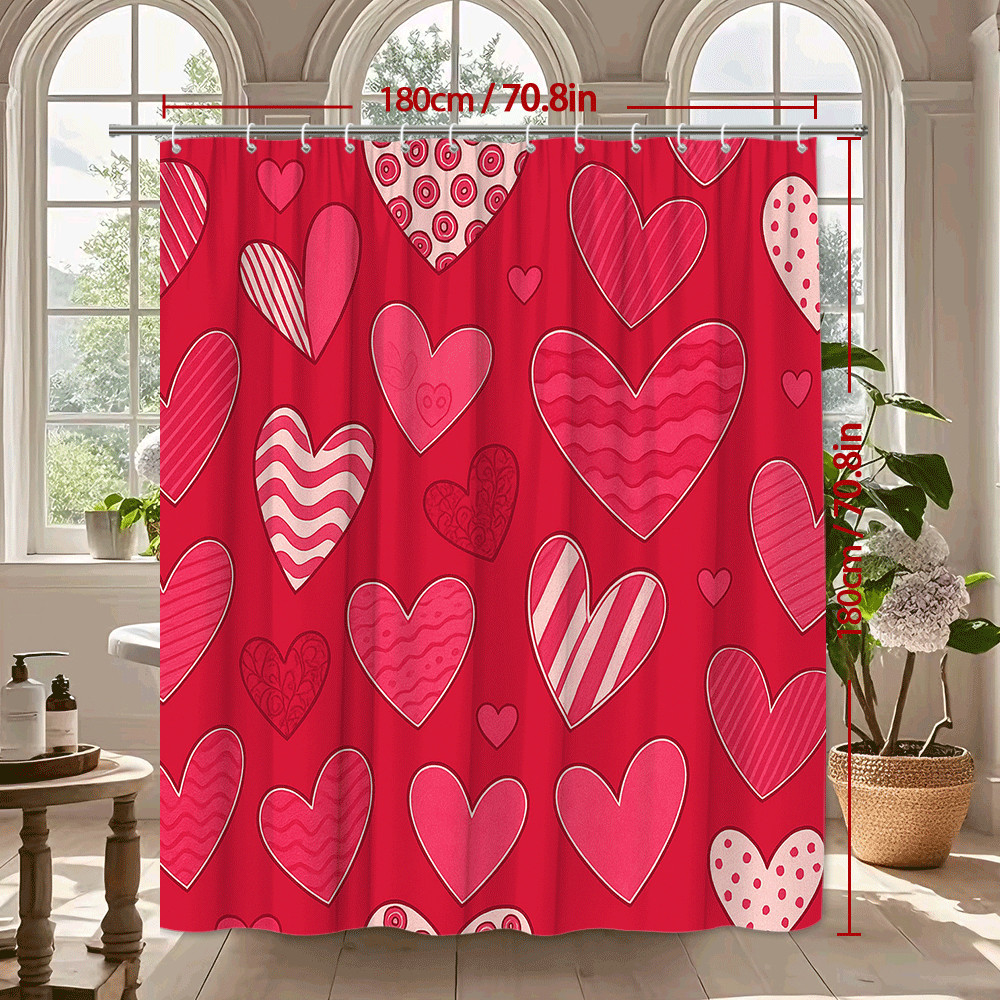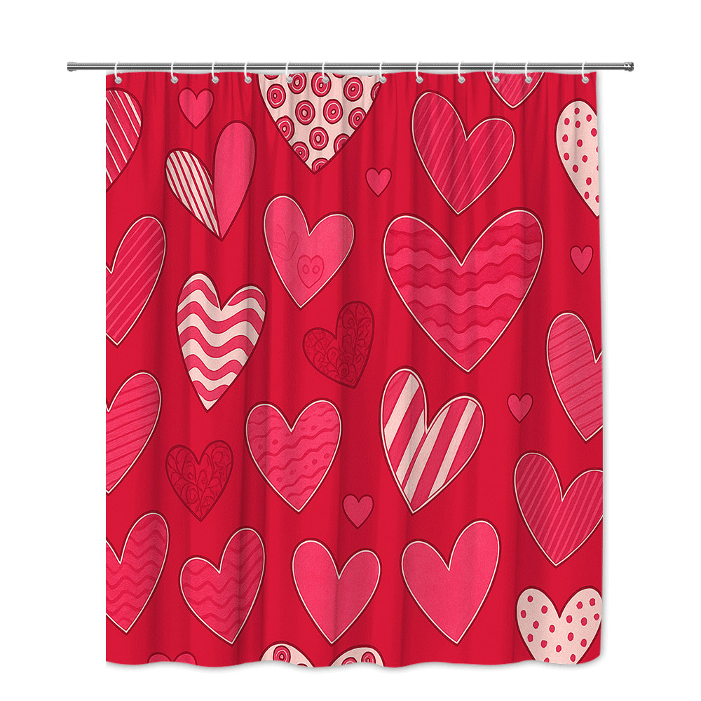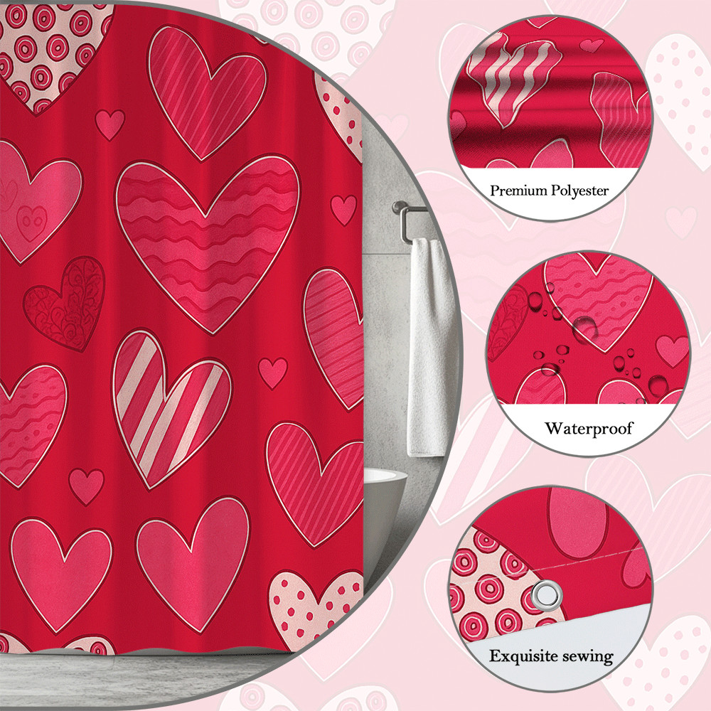 Cute Pink Heart Shower Curtain for Kids, Valentine's Day Decor