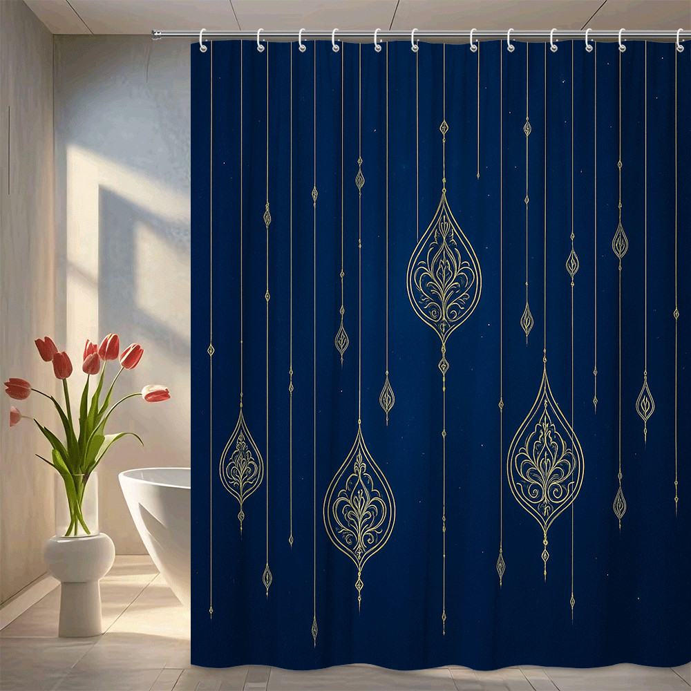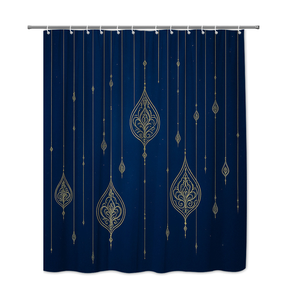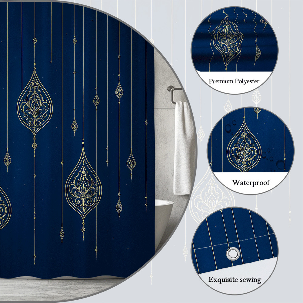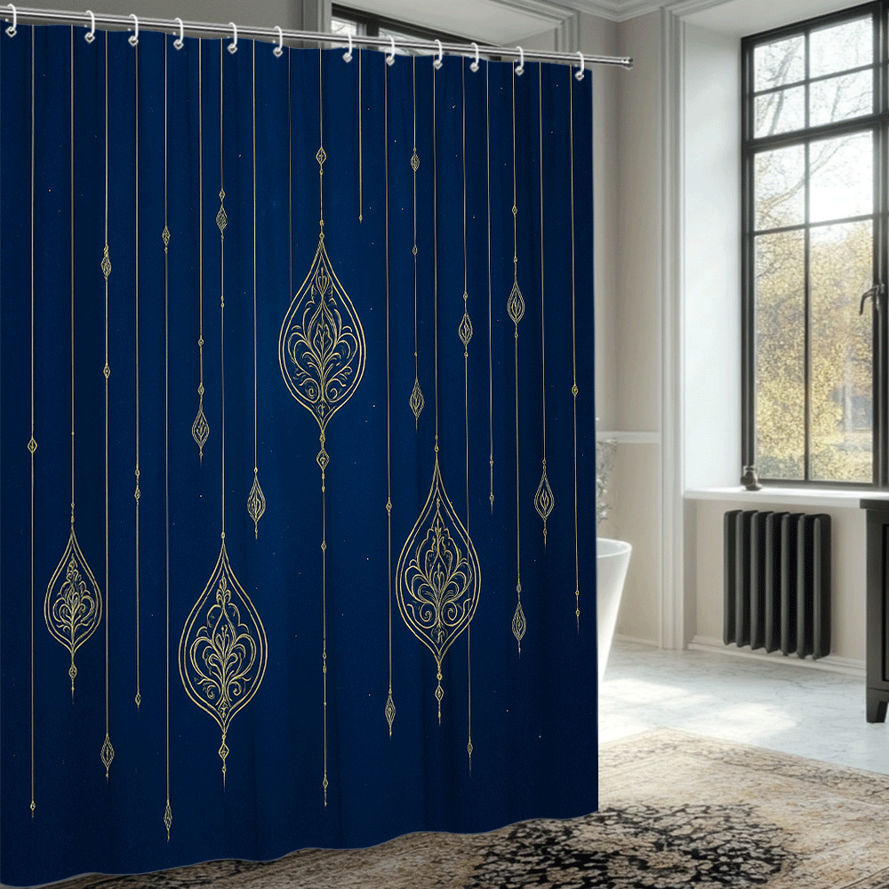 Elegant Gold and Navy Shower Curtain with Intricate Design