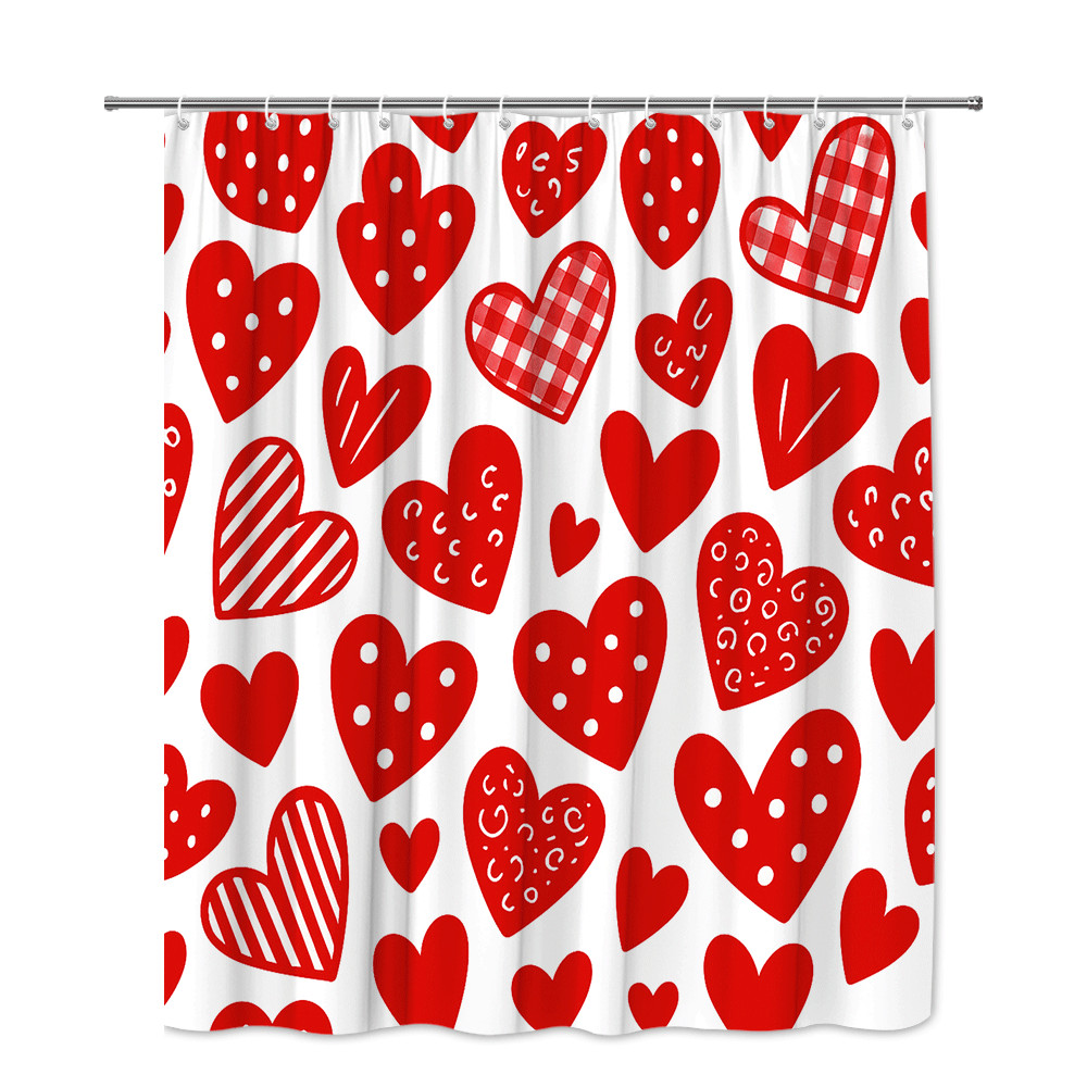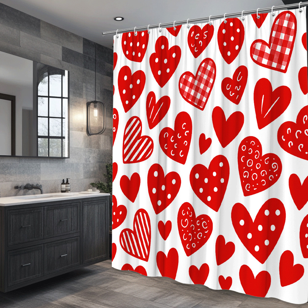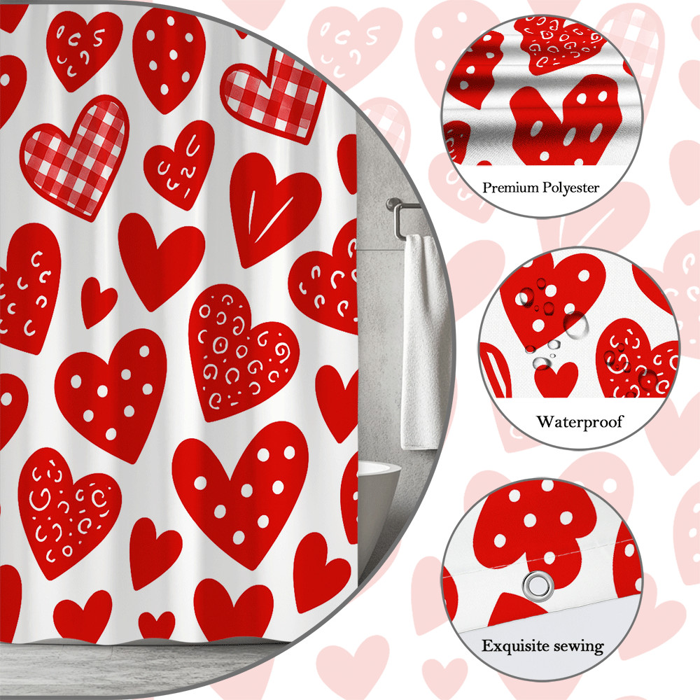 Fun Red Heart Shower Curtain for Kids Bathroom Decor