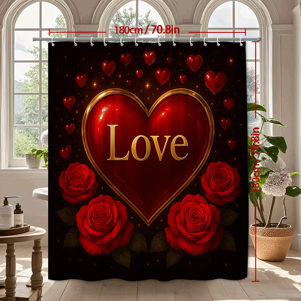 Red Love Shower Curtain with Roses for Valentine's Day