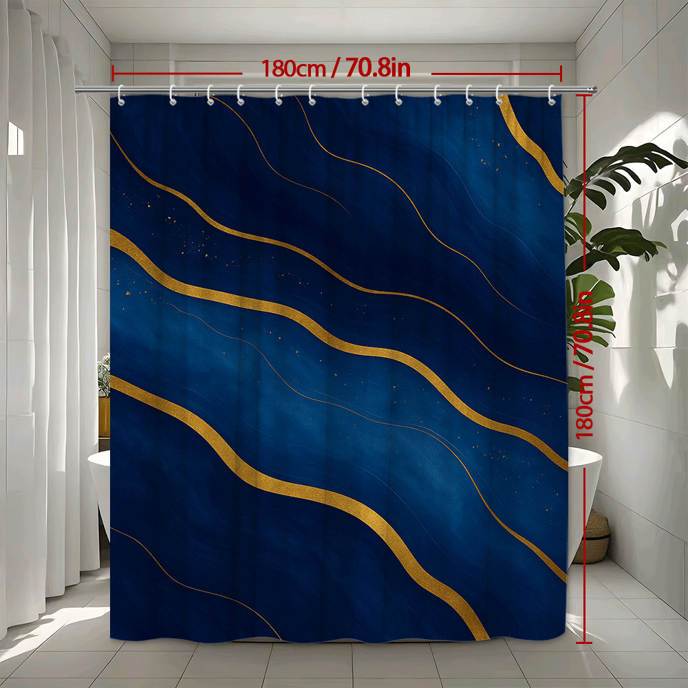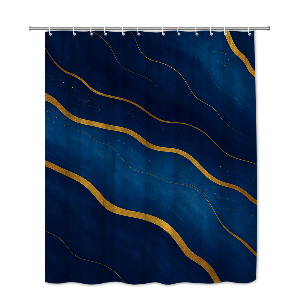 Navy Blue and Gold Shower Curtain for Chic Bathrooms