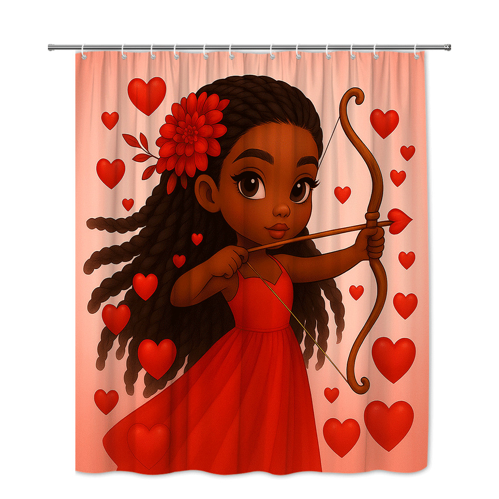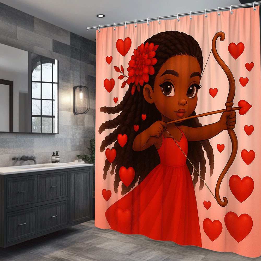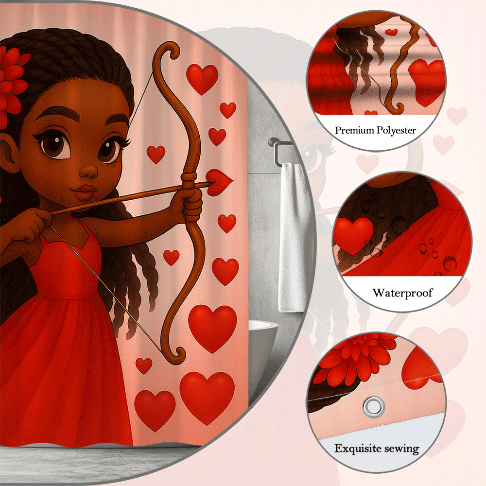 Cute Heart Shower Curtain for Kids - Valentine's Day Decor