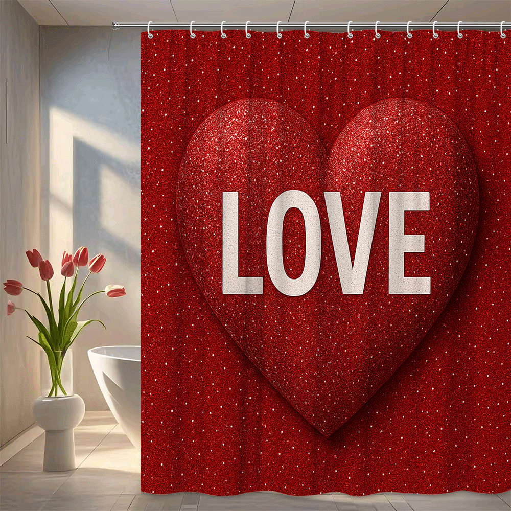 Red Love Heart Shower Curtain for Valentine's Day Decor