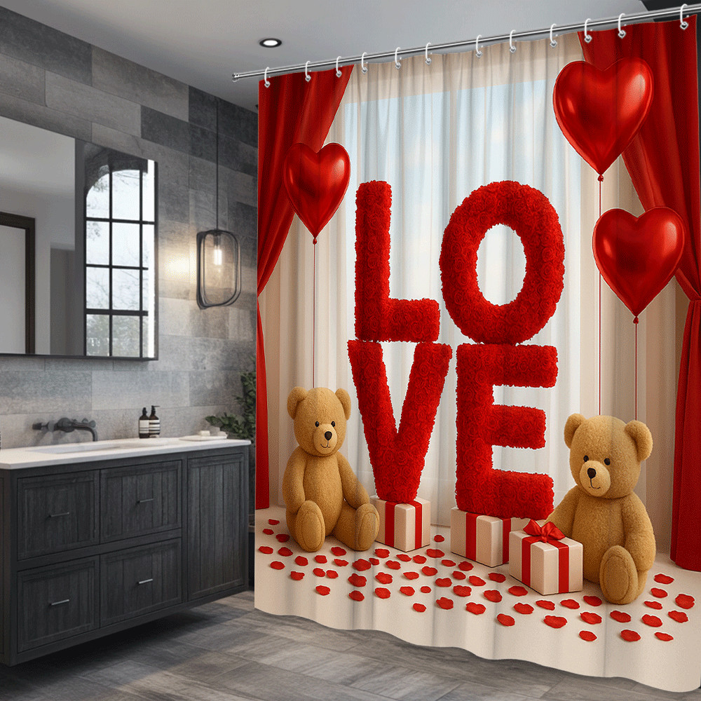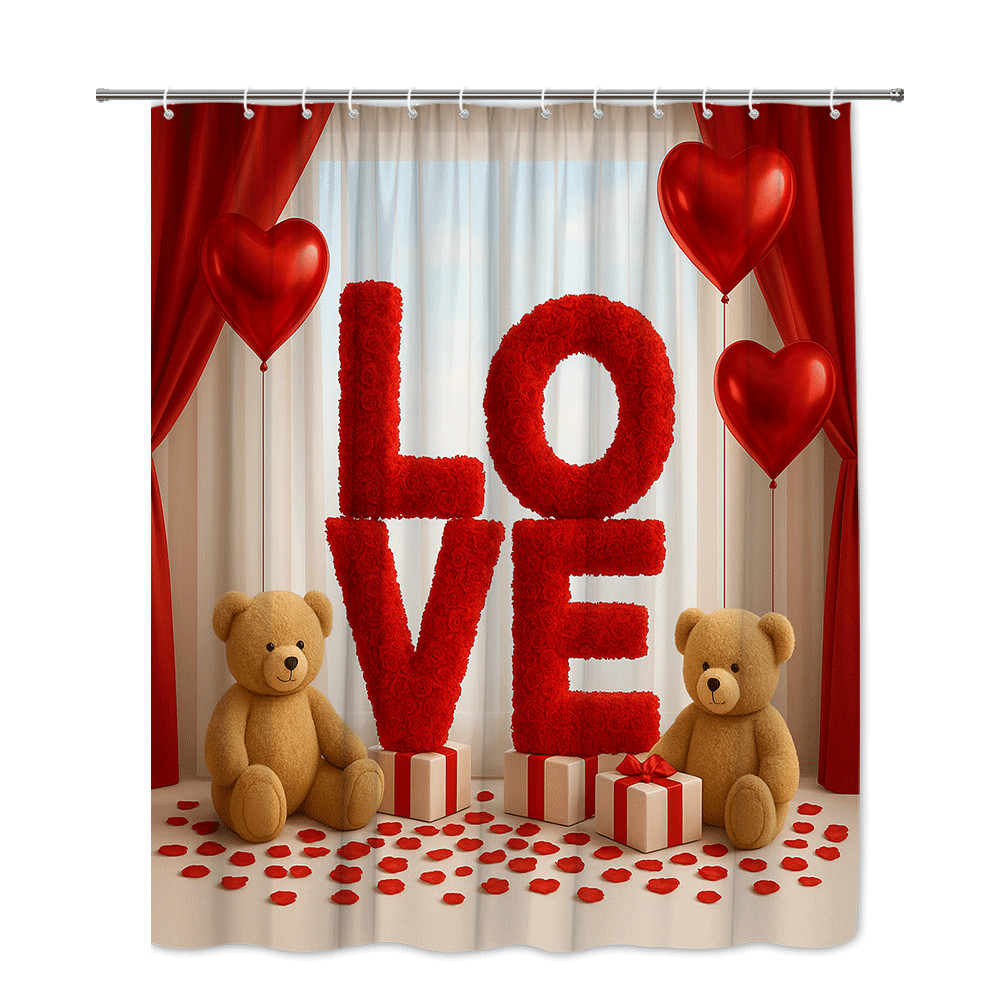 Cute Red Love Shower Curtain for Kids Room, Valentine's Day Decor