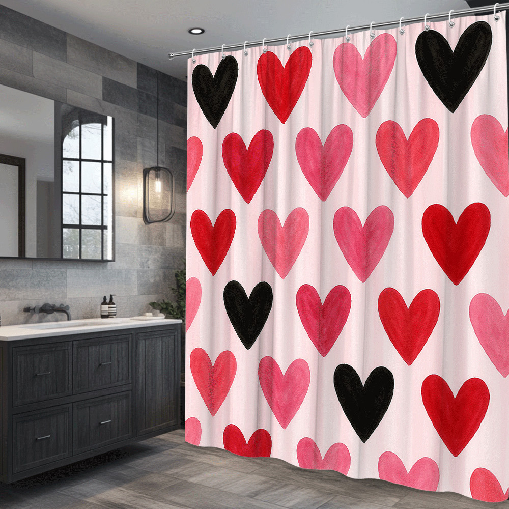 Colorful Heart Shower Curtain for Kids and Valentine's Day Decor