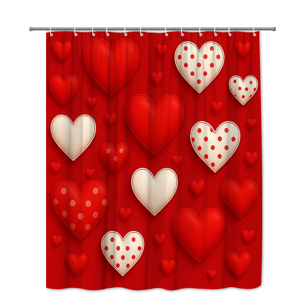 Red Heart Shower Curtain for Valentine's Day, Cute Love Decor