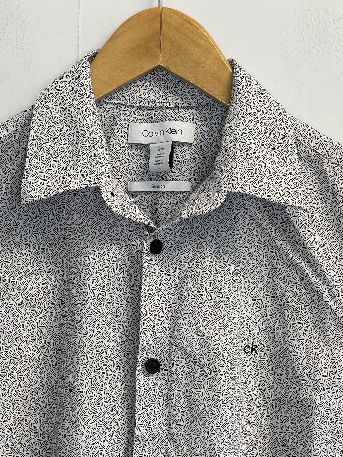 как выглядит CALVIN KLEIN Men s S Stretch Button Up Shirt White Black Design Long Sleeve Logo фото