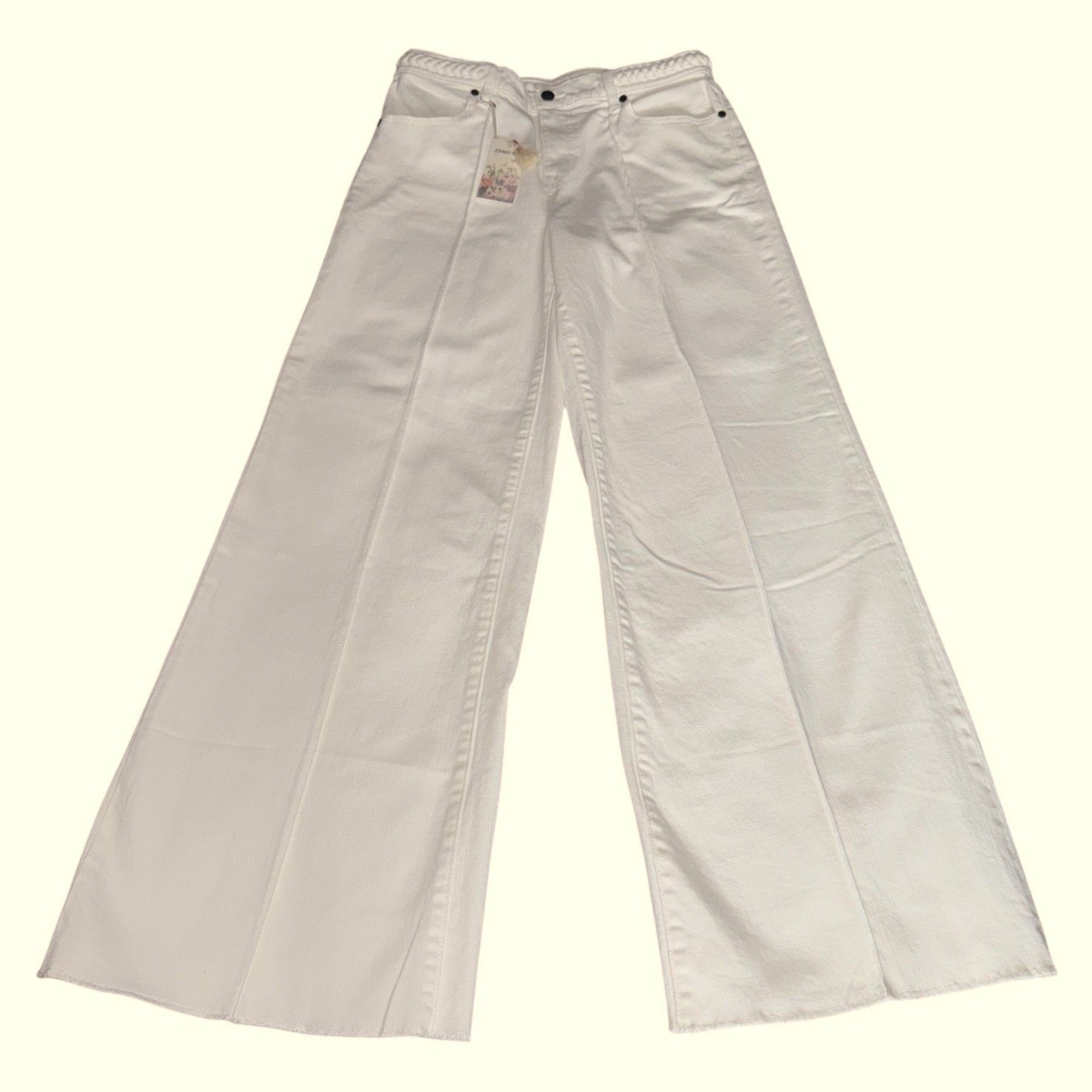 Johnny Was 29 Waist Braided Wide Leg Off White Jeans NWT