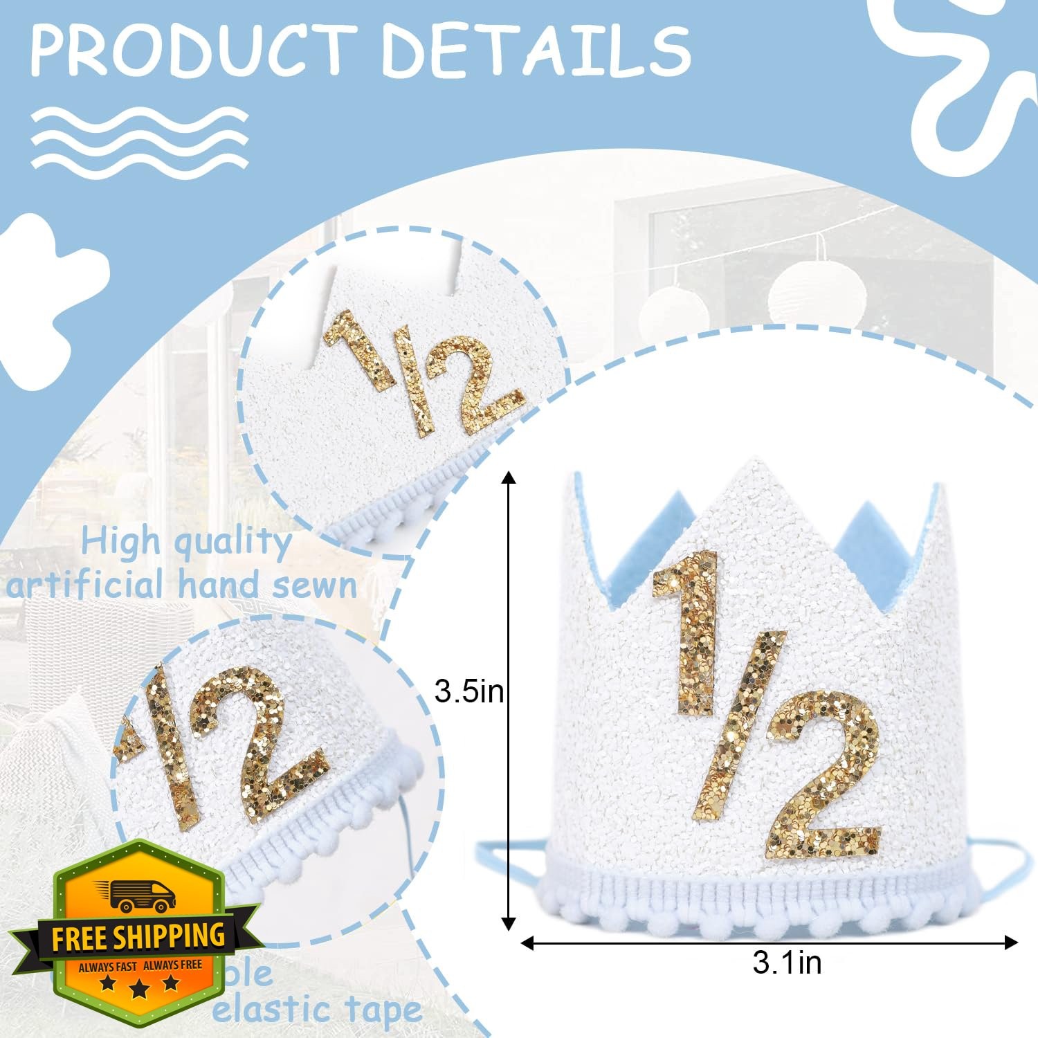 WAWUO Pink 1/2 Birthday High Chair Banner Girls Half Party