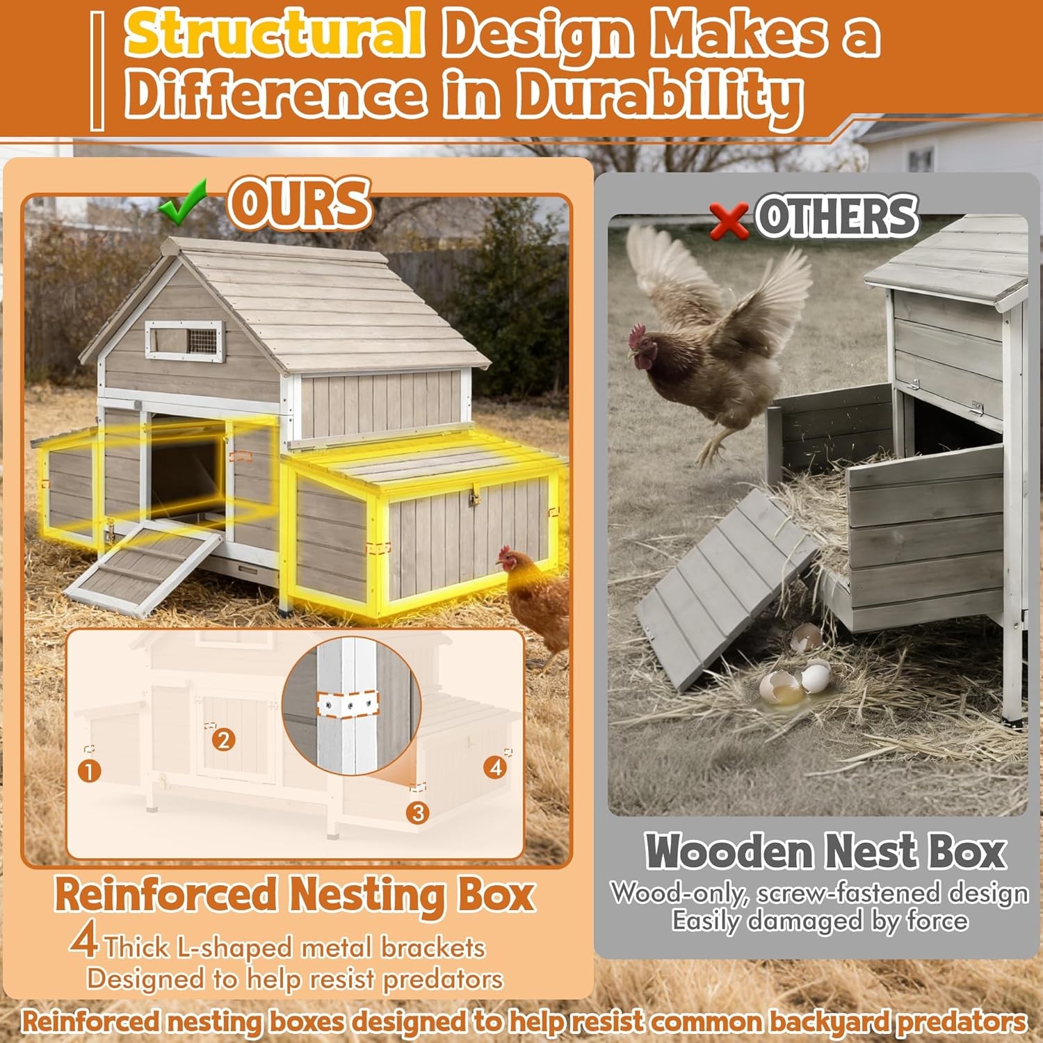 PETSCOSSET Large Wooden Chicken Coop Outdoor Poultry Cage with 6 Nesting Boxes