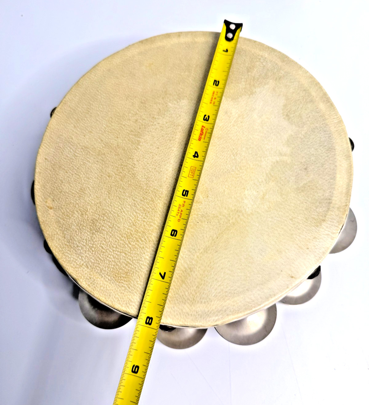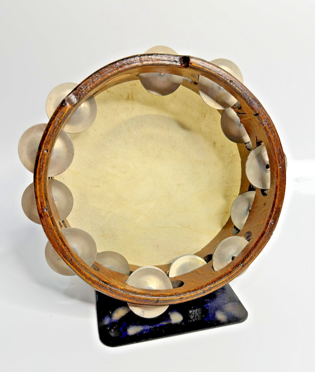 как выглядит Vintage Tambourine 8 Wood Frame Natural Skin Head Double Row Jingles фото