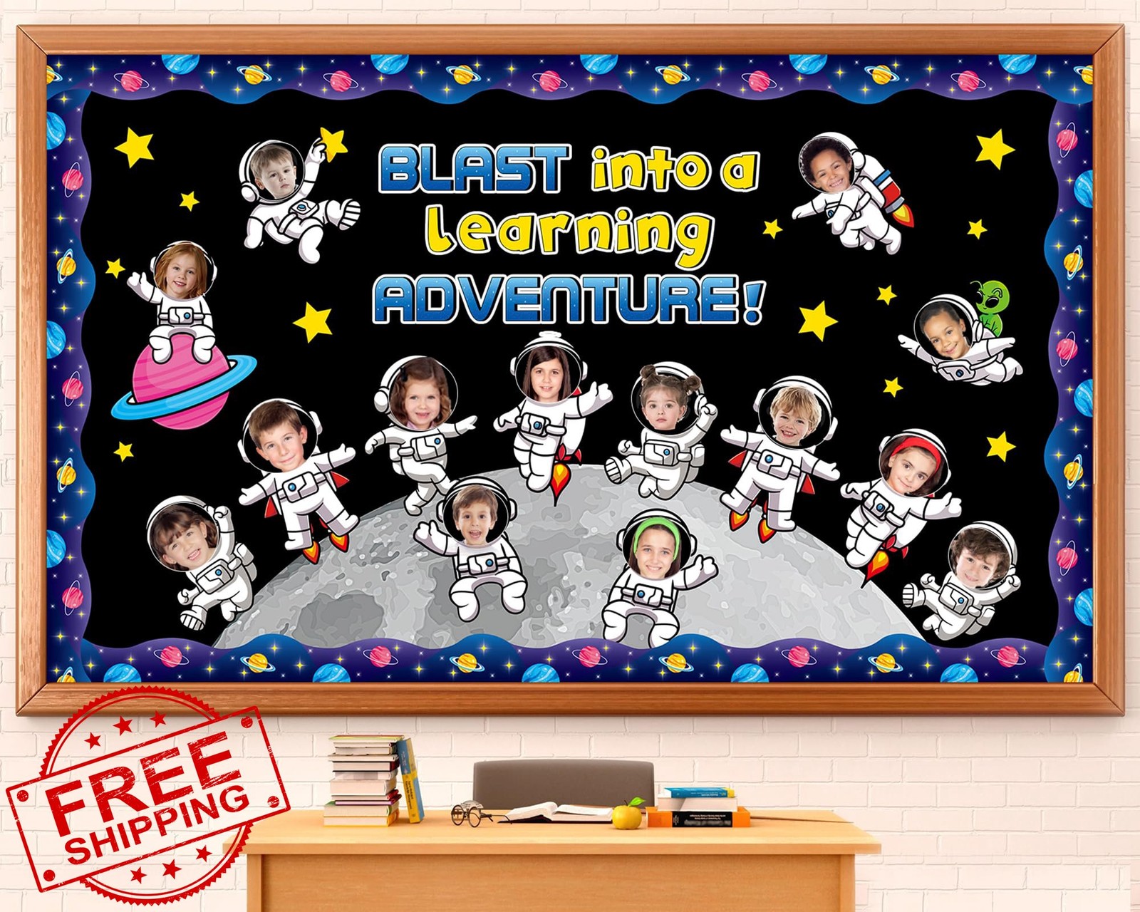 как выглядит Outer Space Astronaut Bulletin Board Set Galaxy Planet Cutouts Kids фото
